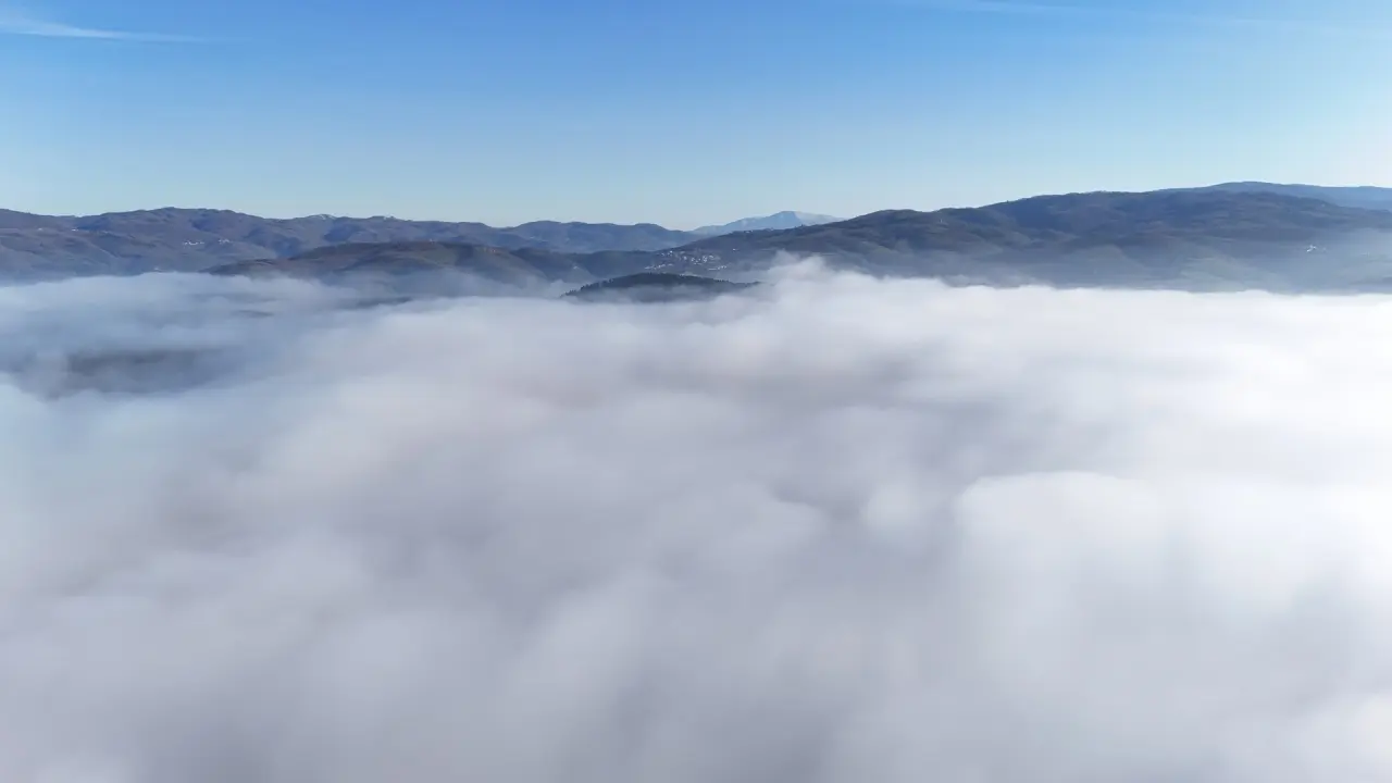 Düzce’de sabah saatlerinde oluşan yoğun sis, görüş mesafesini 20 metreye kadar düşürdü. Kentin üzerini kaplayan sis tabakası dron ile havadan görüntülendi.