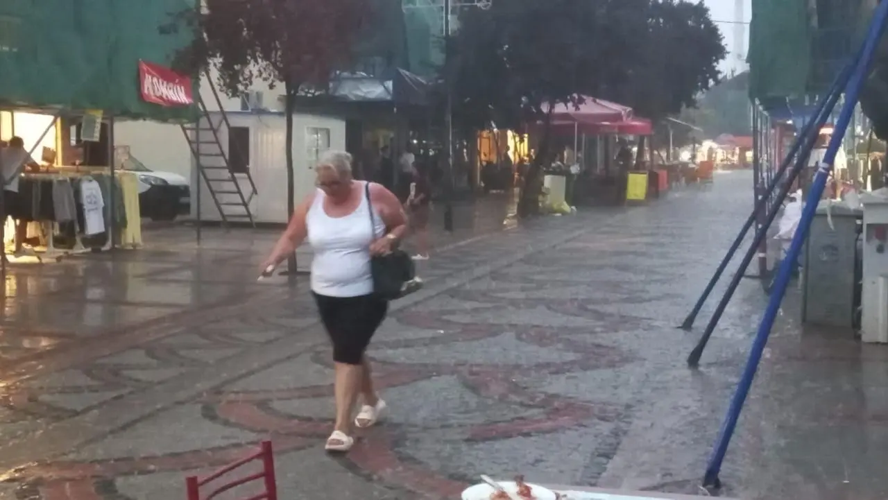 Küçük bir kız çocuğu yağmur altında oynayarak renkli görüntüler oluşturdu. Bazı vatandaşlar poşetlerle korunurken, bazıları kapalı alanlara sığındı.