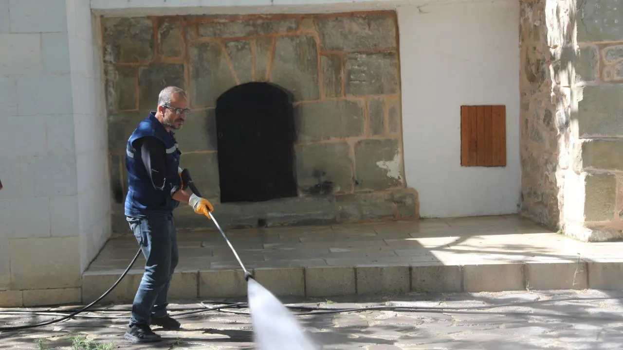 Elazığ Belediyesi ekipleri, Kurban Bayramı öncesinde kent genelindeki ibadethanelerde kapsamlı temizlik ve dezenfeksiyon çalışmaları gerçekleştiriyor.