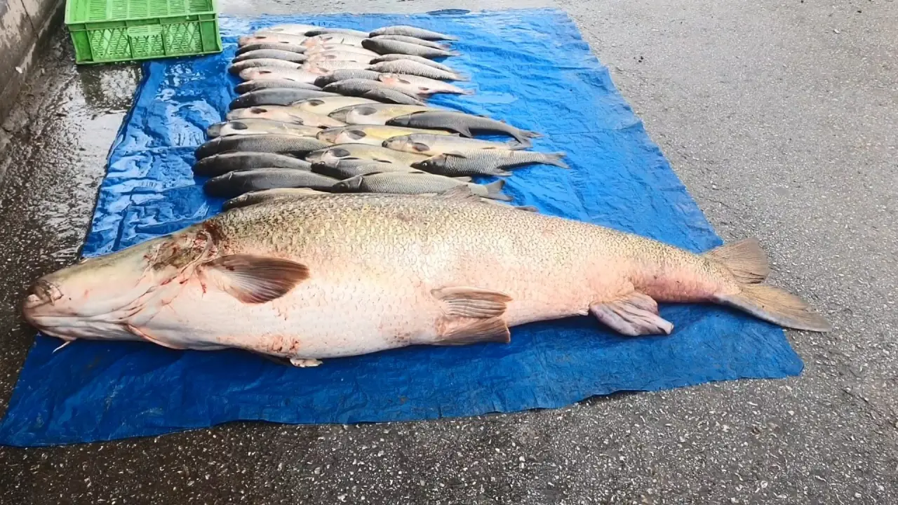 Balıkçılar, balığı doğrayarak et şeklinde satmayı planlıyor. Balığın eti alıcılarını bekliyor.