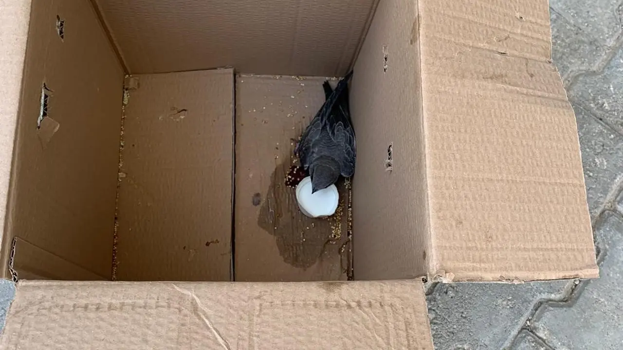 Su içtikten sonra kuşun hareketlendiği gözlemlendi. Vatandaş, korumak için kuşu kartonun içine aldı ve güvende tuttu.