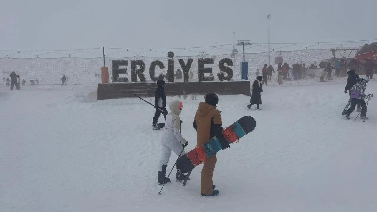 Erciyes Kayak Merkezi'nde kar kalınlığı 130 santimetreye ulaştı, yoğun kar yağışı turistleri memnun ediyor.