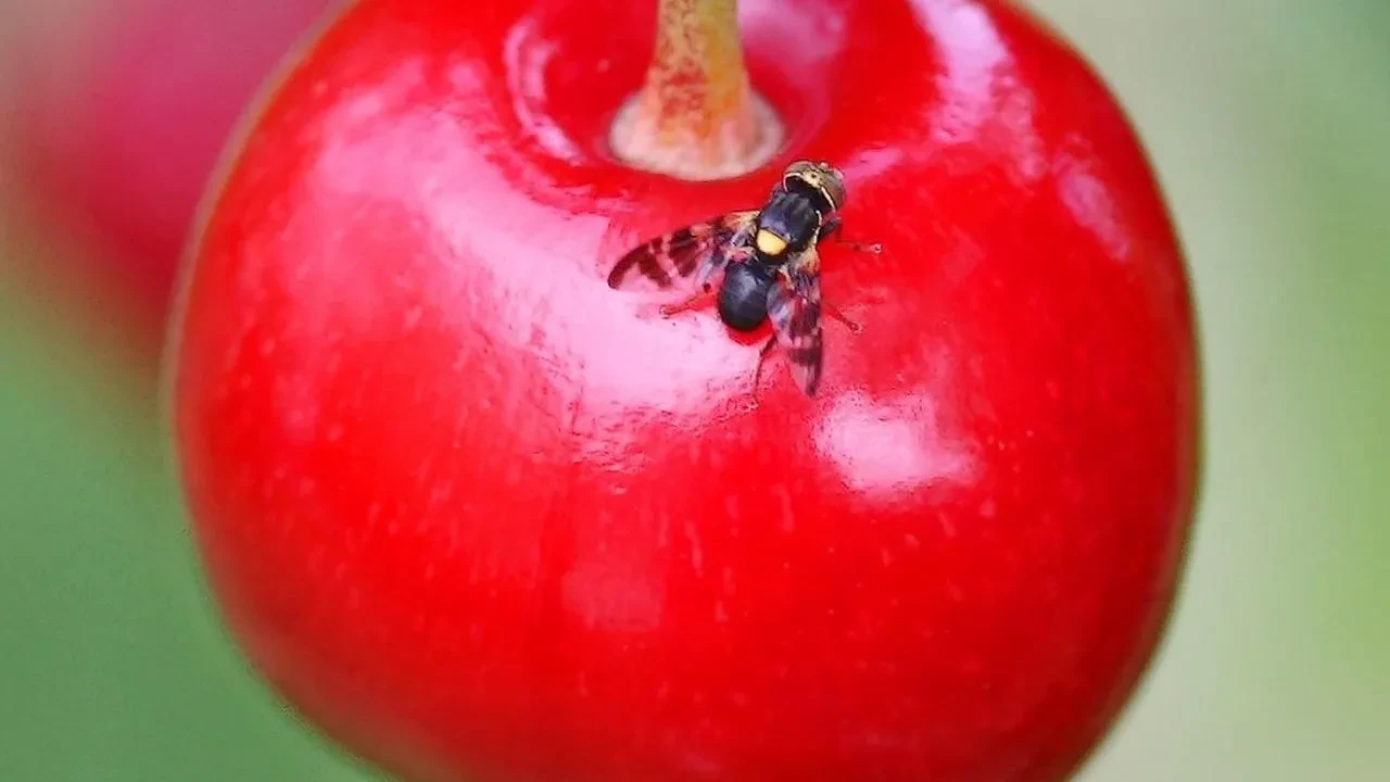 Kiraz sineği, meyveleri kahverengileştirerek çürümeye neden oluyor. Bu zararlı böcek, 4-5 mm boyutunda olup parlak siyah göğüs yapısına sahiptir.