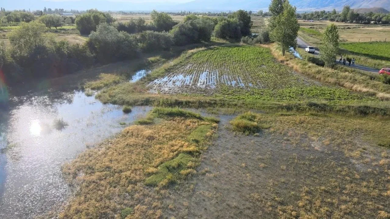 Tarlalarda yaşanan su baskını nedeniyle ekili ürünler zarar gördü. DSİ, sorunun çözümü için kanallarda temizlik çalışması başlattı.