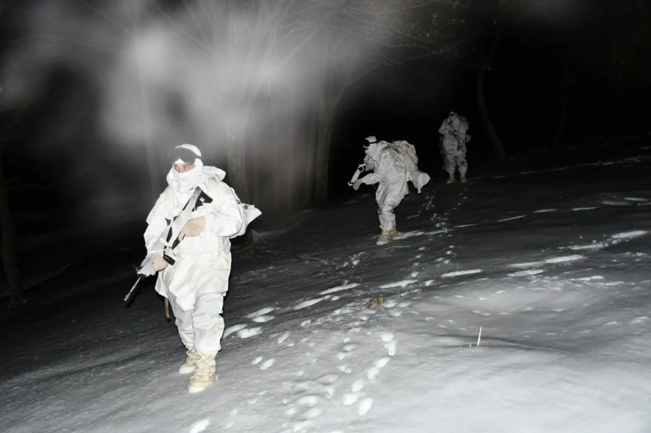 3’üncü Ordu Komutanlığı birlikleri, zorlu kış şartlarında gece eğitimleri gerçekleştirdi. Eğitimlerde askerlerin performansı dikkat çekti.