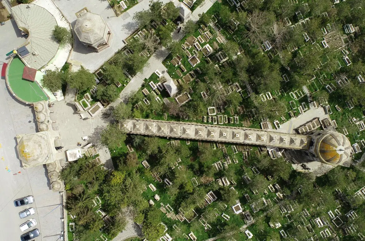 Erzincan’ın manevi mekânlarından Terzibaba türbesi ve mezarlığı drone ile havadan görüntülendi. Geçmiş yıllarda yangınla harap olan türbe, 1980’lerde yeniden inşa edildi.