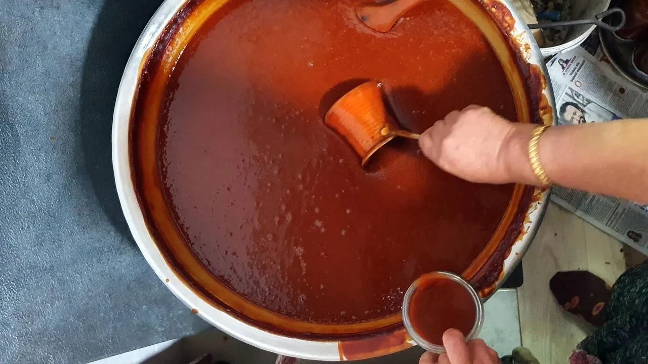 Kuşburnu marmelatı yapımı için haşlanan meyveler kevgirden geçirilip şekerle pişiriliyor. Geleneksel yöntemlerle hazırlanan ürün, kavanozlarda muhafaza ediliyor.