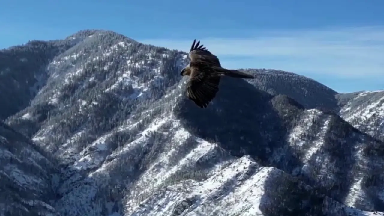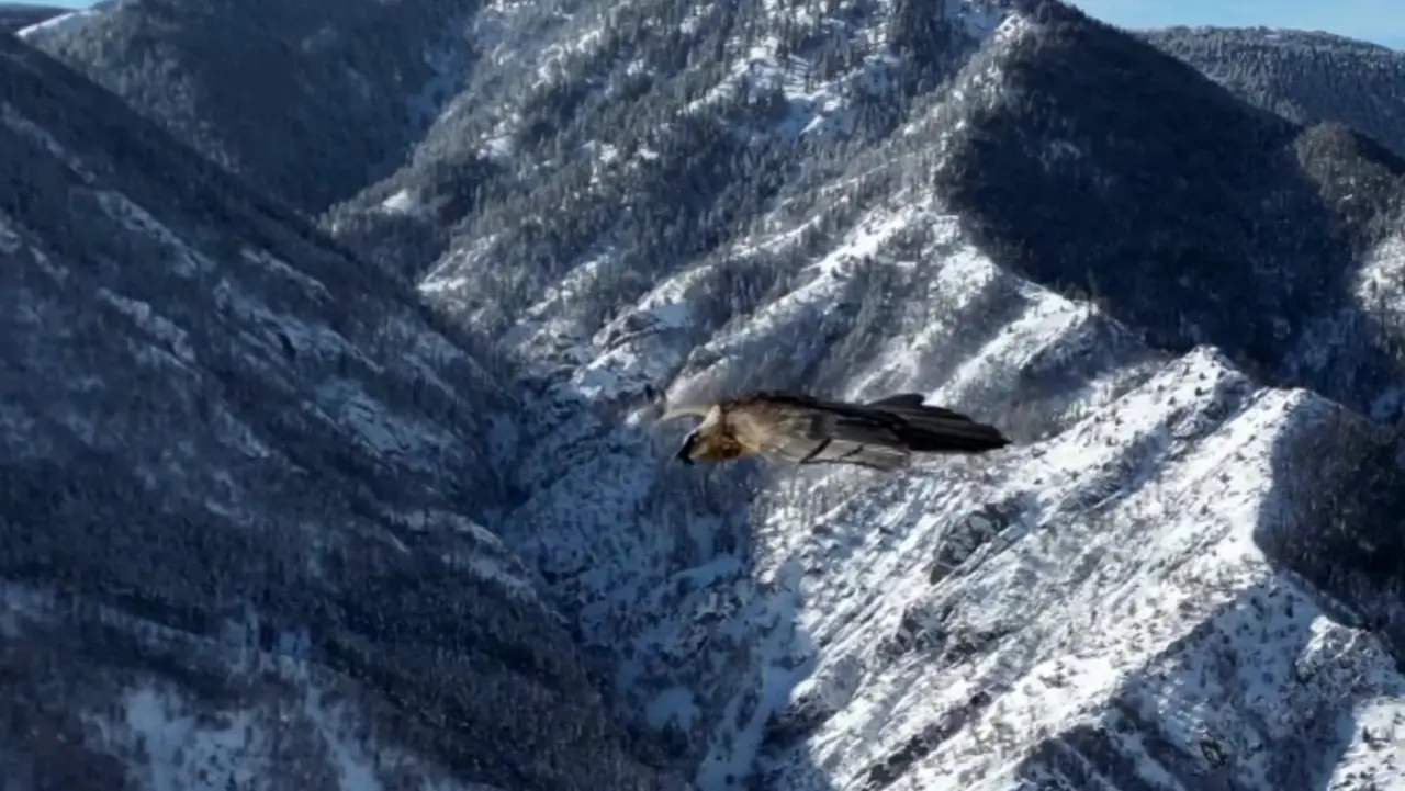Sakallı akbaba, 1700 rakımda dronla yan yana uçtu. Kuşun saldırgan davranış göstermemesi, eşsiz görüntülerin oluşmasını sağladı.