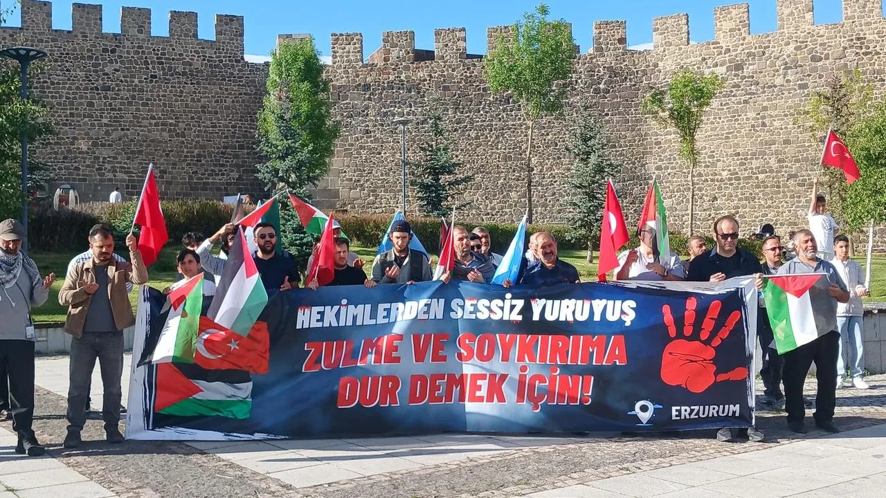 Erzurum'da sağlık çalışanları ve tıp öğrencileri, İsrail'in Gazze'ye yönelik saldırılarını protesto etmek için sessiz yürüyüş gerçekleştirdi.