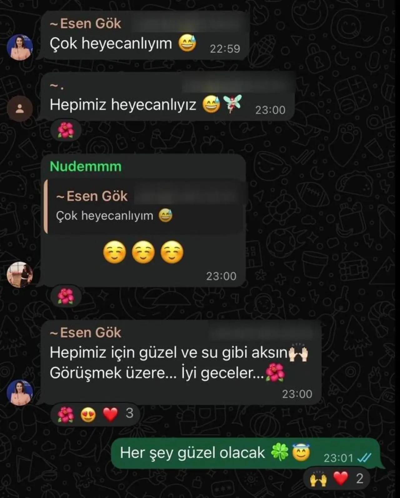 Film çekiminde keyifli anlar yaşayan Gök, ekiple samimi paylaşımlarda bulundu. Çekim sonrası whatsapp grubunda heyecanını dile getirdi.