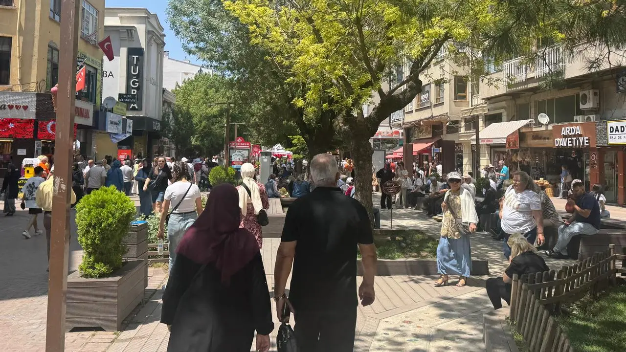 Cadde üzerindeki banklar ve oturma alanları tamamen doldu. Aileler ve gençler güneşli havanın keyfini çıkardı.