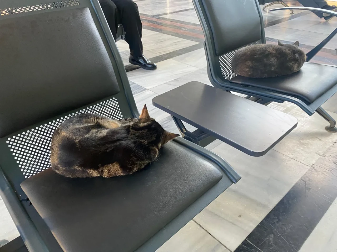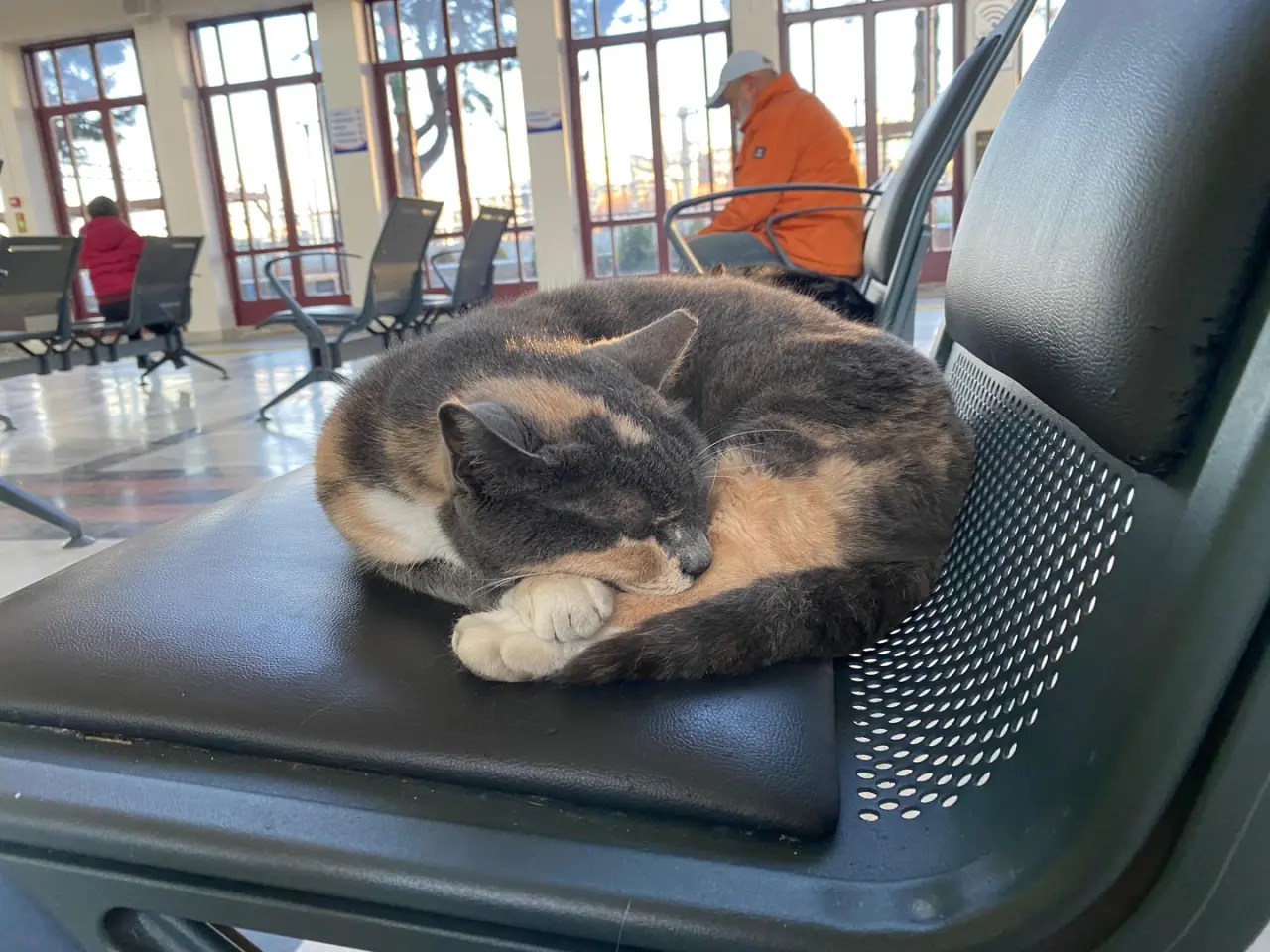 Hava sıcaklıklarının eksi değerlere düşmesi, sokak hayvanlarını zor durumda bıraktı. Kediler, istasyondaki koltuklara kıvrılarak uyudu.