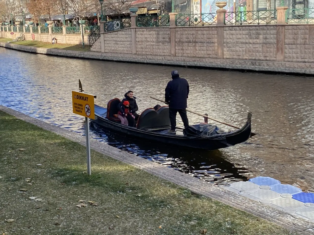 Porsuk Çayı üzerinde gondol turu yapanlar, kış manzarasının keyfini çıkardı. Çocuklarıyla birlikte tura katılan aileler, çevredeki bakışları üzerine çekti.
