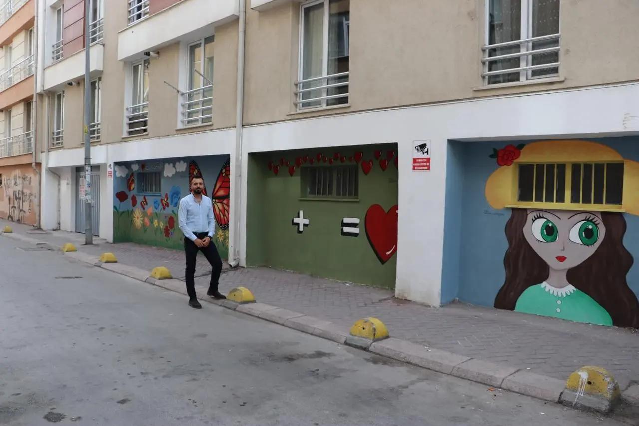 Eskişehir'de bir apartman yöneticisi, duvarlardaki graffitiye sanatla çözüm buldu ve mahalleyi renklendirdi.