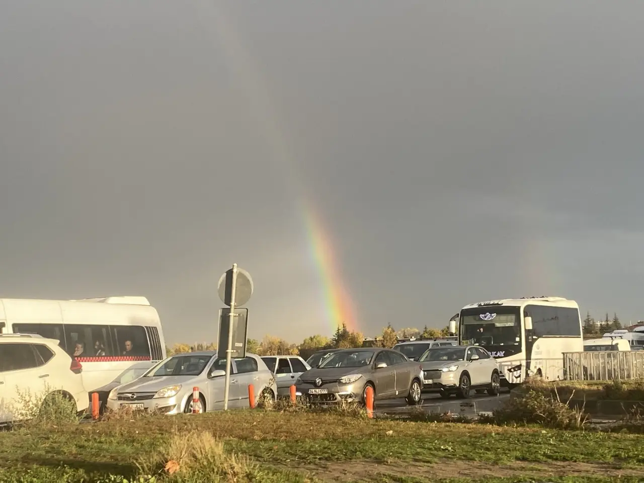 Cep telefonlarıyla anı ölümsüzleştirenler, gökkuşağının kısa sürede kayboluşunu hayranlıkla izledi. Eşsiz manzara, şehir sakinlerine unutulmaz bir akşam yaşattı.