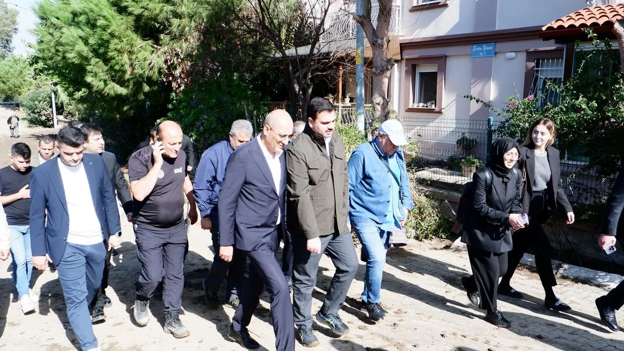 AK Parti Genel Sekreteri Eyyüp Kadir İnan, Foça’da selden etkilenen mahalleleri ziyaret ederek incelemelerde bulundu.