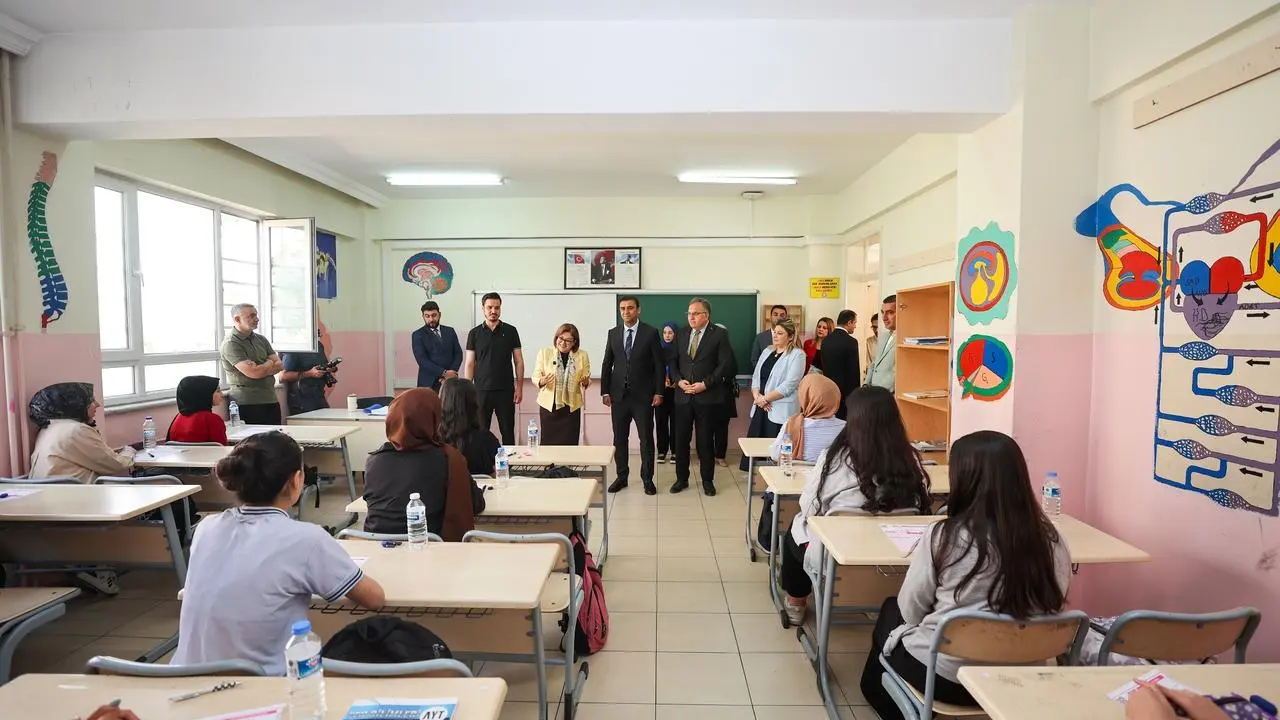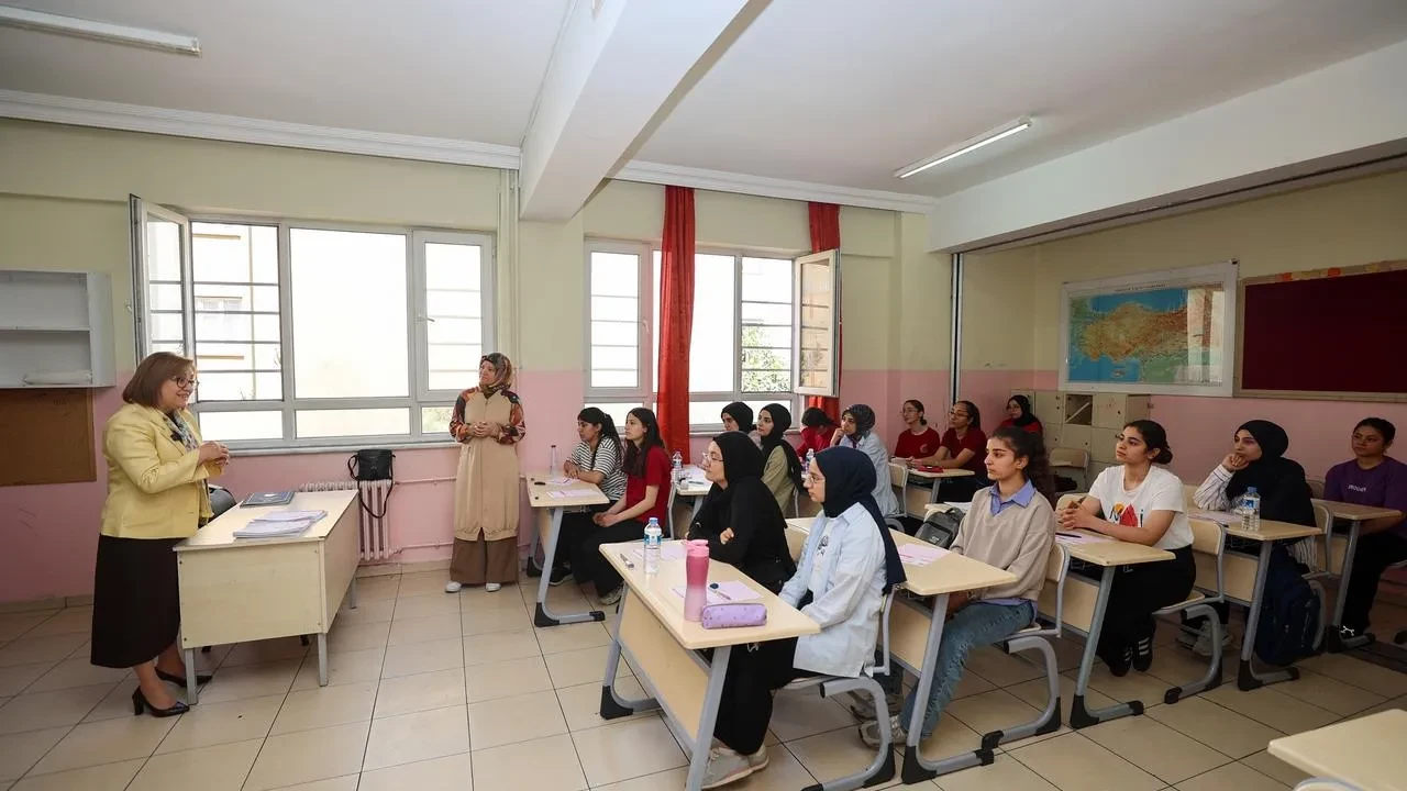 Başkan Fatma Şahin, Abdülkadir Konukoğlu Fen Lisesi ve Nuriye Vasıf Onat Kız Anadolu Lisesi'ni ziyaret etti. Öğrencilerle sohbet eden Şahin, sınav öncesi moral ve motivasyon desteği verdi.