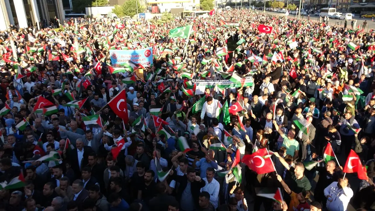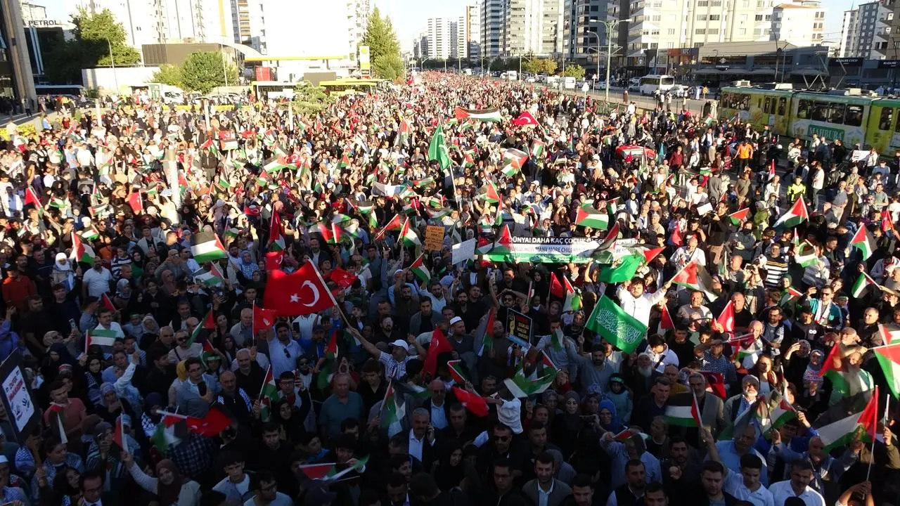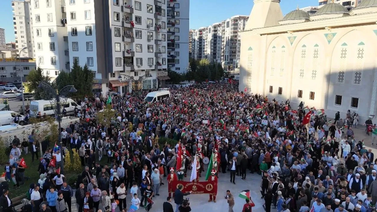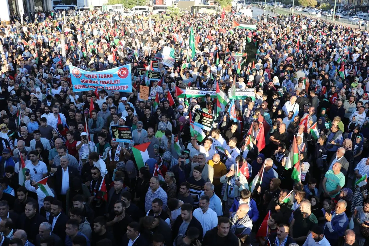 Gaziantep'te binlerce kişi Filistin'e destek için bir araya geldi ve yürüyüş düzenledi.