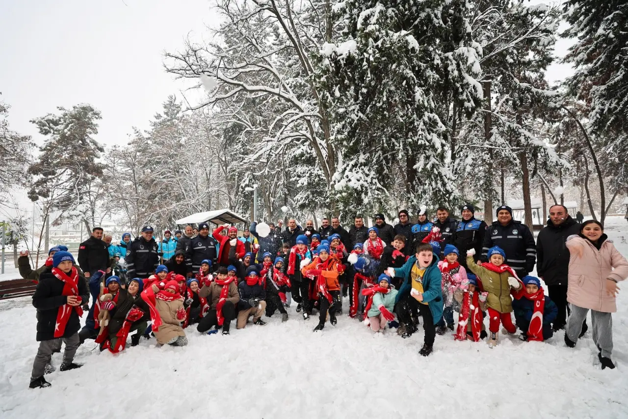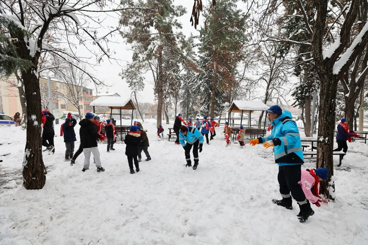 Kar yağışının ardından parklara koşan çocuklar için özel bir organizasyon düzenlendi. Belediye ekipleri, miniklerin soğuktan etkilenmemesi için hediyeler verdi.