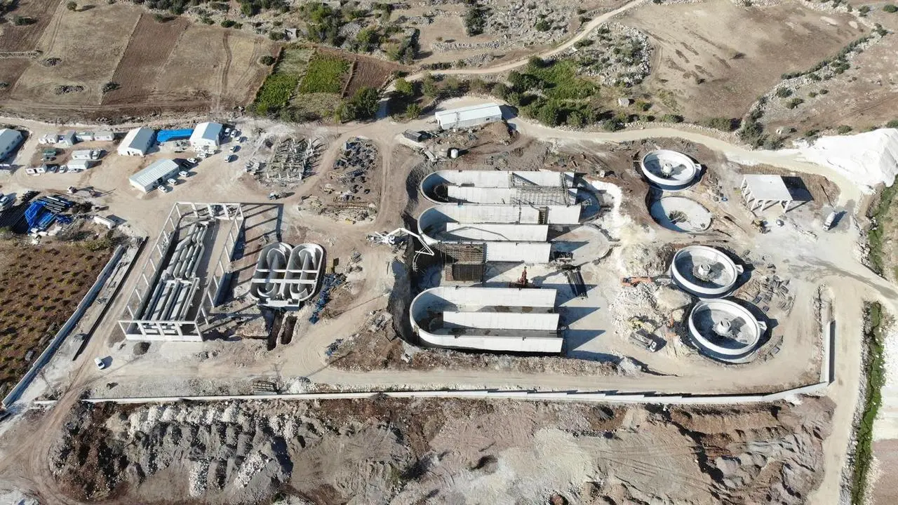 Tesisin giriş ünitesi ve çamur susuzlaştırma binaları tamamlandı. Havalandırma ve çökertim havuzlarında çalışmalar hızla devam ediyor.