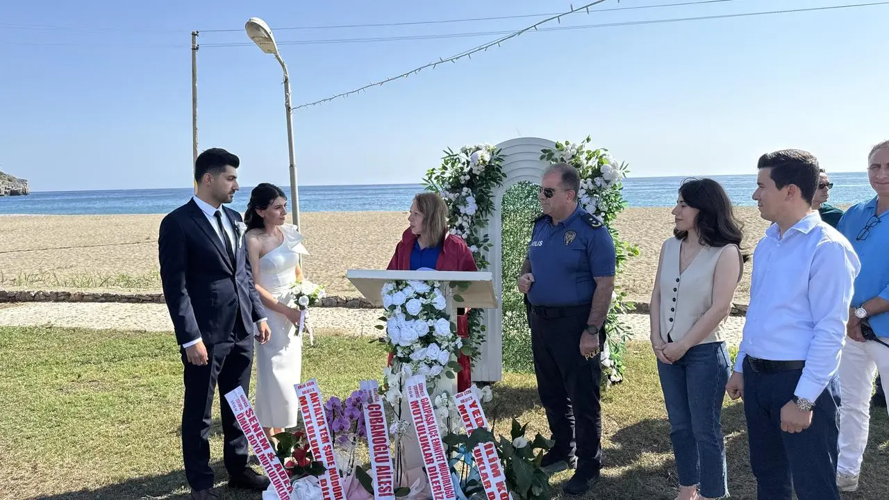 Antalya'nın Gazipaşa İlçe Emniyet Müdürlüğü'nde görevli komiserler Arzu Çobanoğlu ve Can Kahveci nikah masasına oturdu.