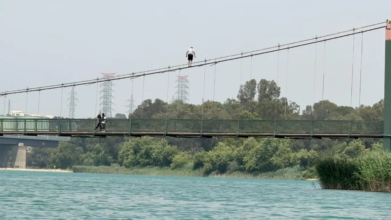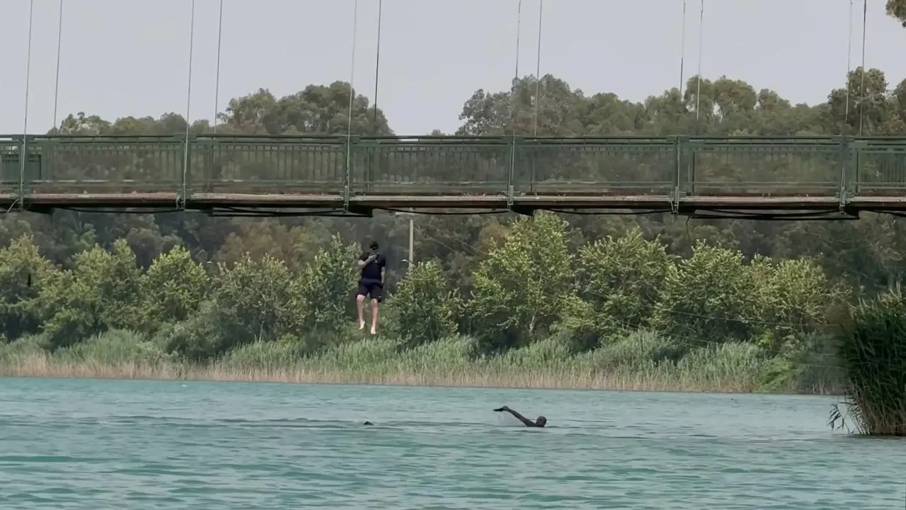Adana'da aşırı sıcaklar nedeniyle gençler, Seyhan Nehri üzerindeki Gençlik Köprüsü'nün halatlarına tırmanarak tehlikeli atlayışlar gerçekleştirdi.