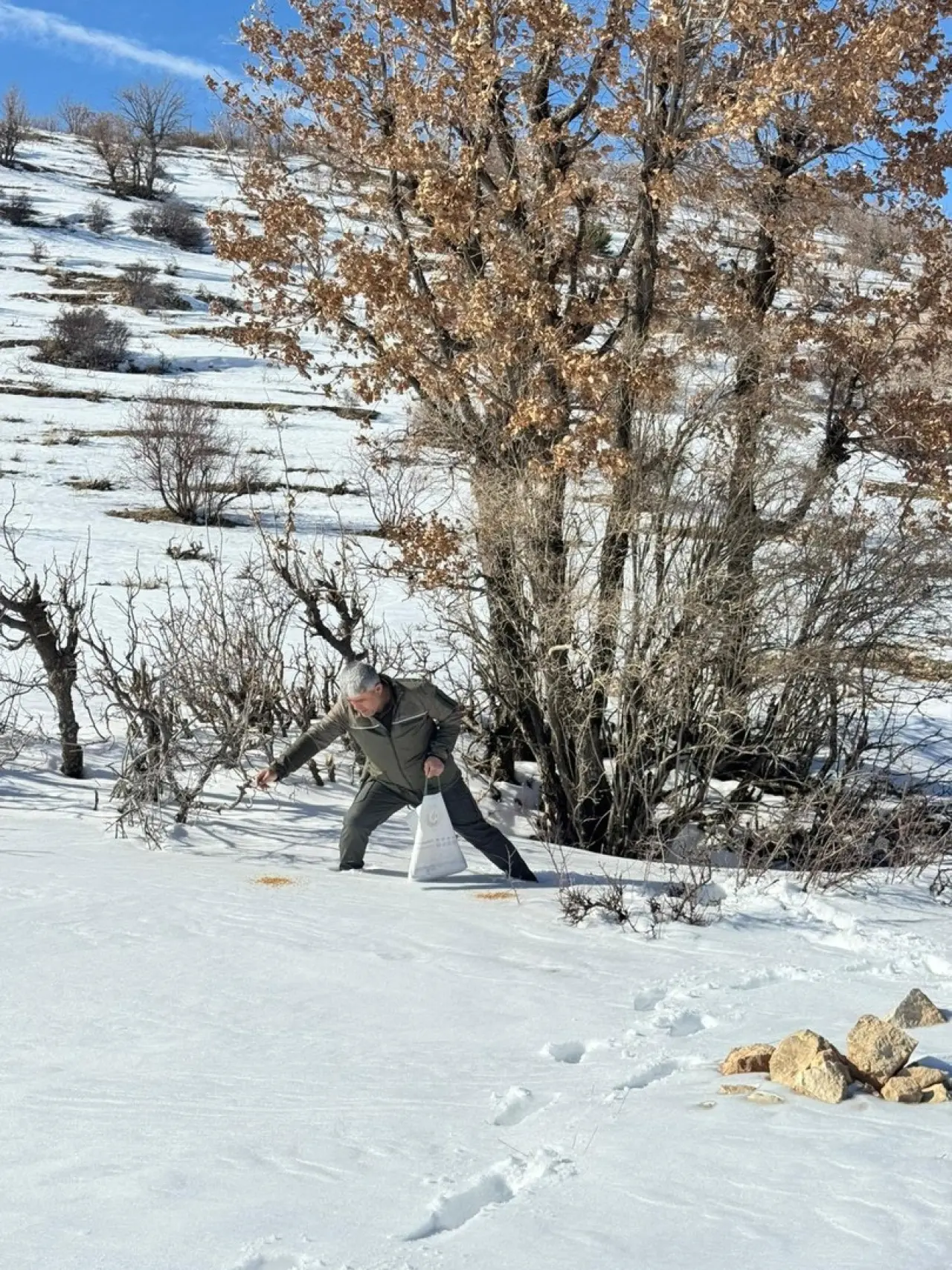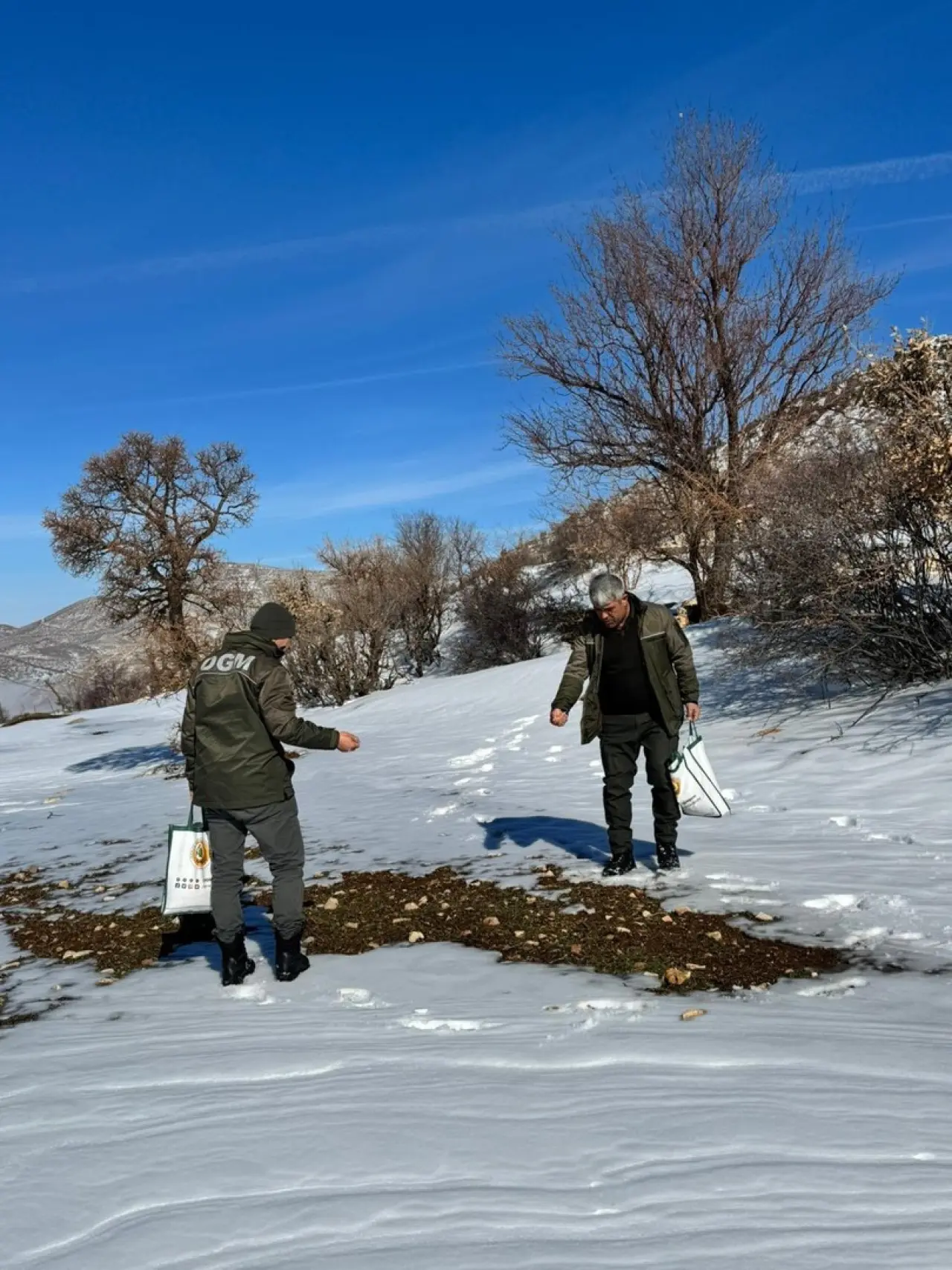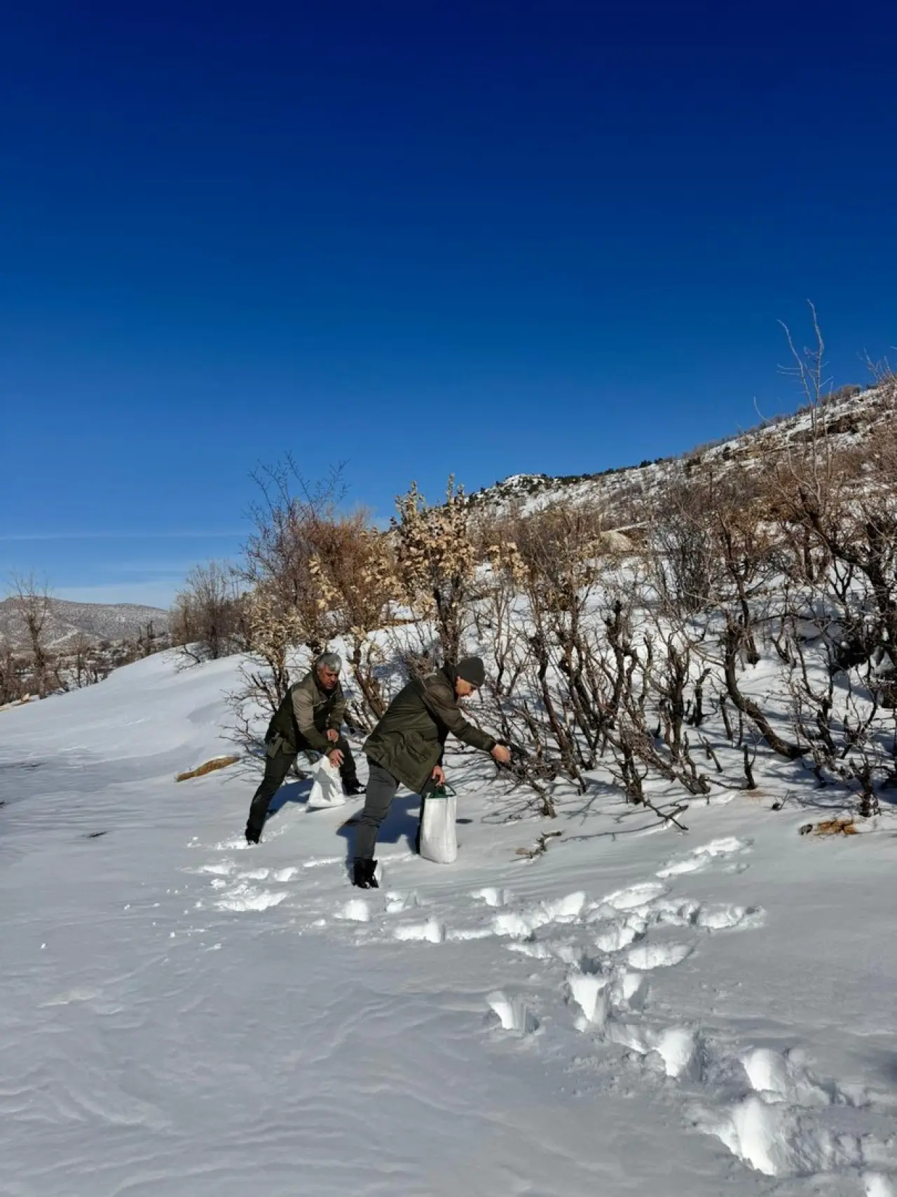 Ekipler, dondurucu soğuğa rağmen yaban hayvanları ve kuşlar için özenle yiyecek dağıttı. Her bir yem bırakma noktası, hayvanların kolay ulaşabileceği şekilde belirlendi.