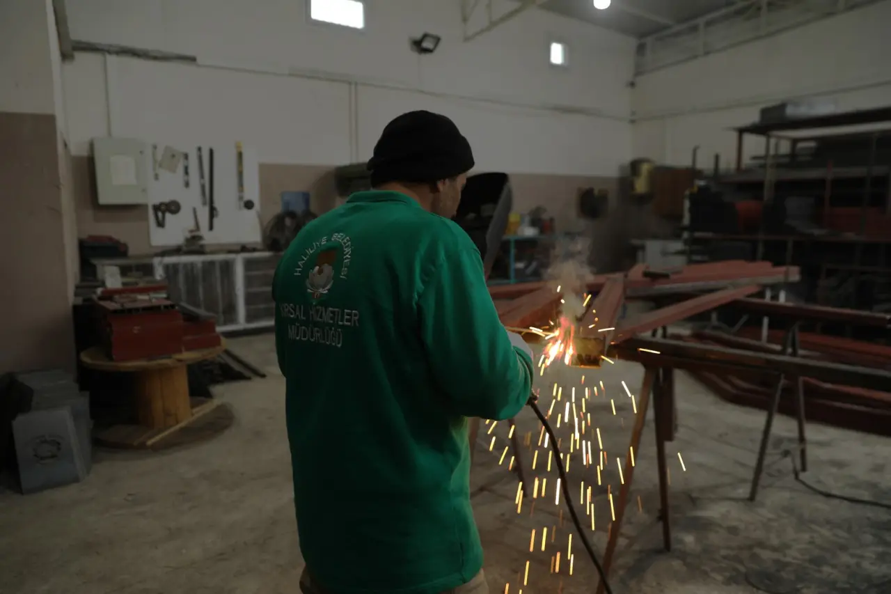 Belediye, Metal-İş, Boyama ve Ahşap Atölyeleri’nde park ve yeşil alanlar için donatı elemanları üretiyor. Banklar, kamelyalar ve dekoratif üniteler tasarımdan montaja kadar kendi imkânlarıyla hazırlanıyor.