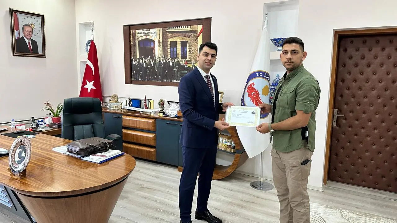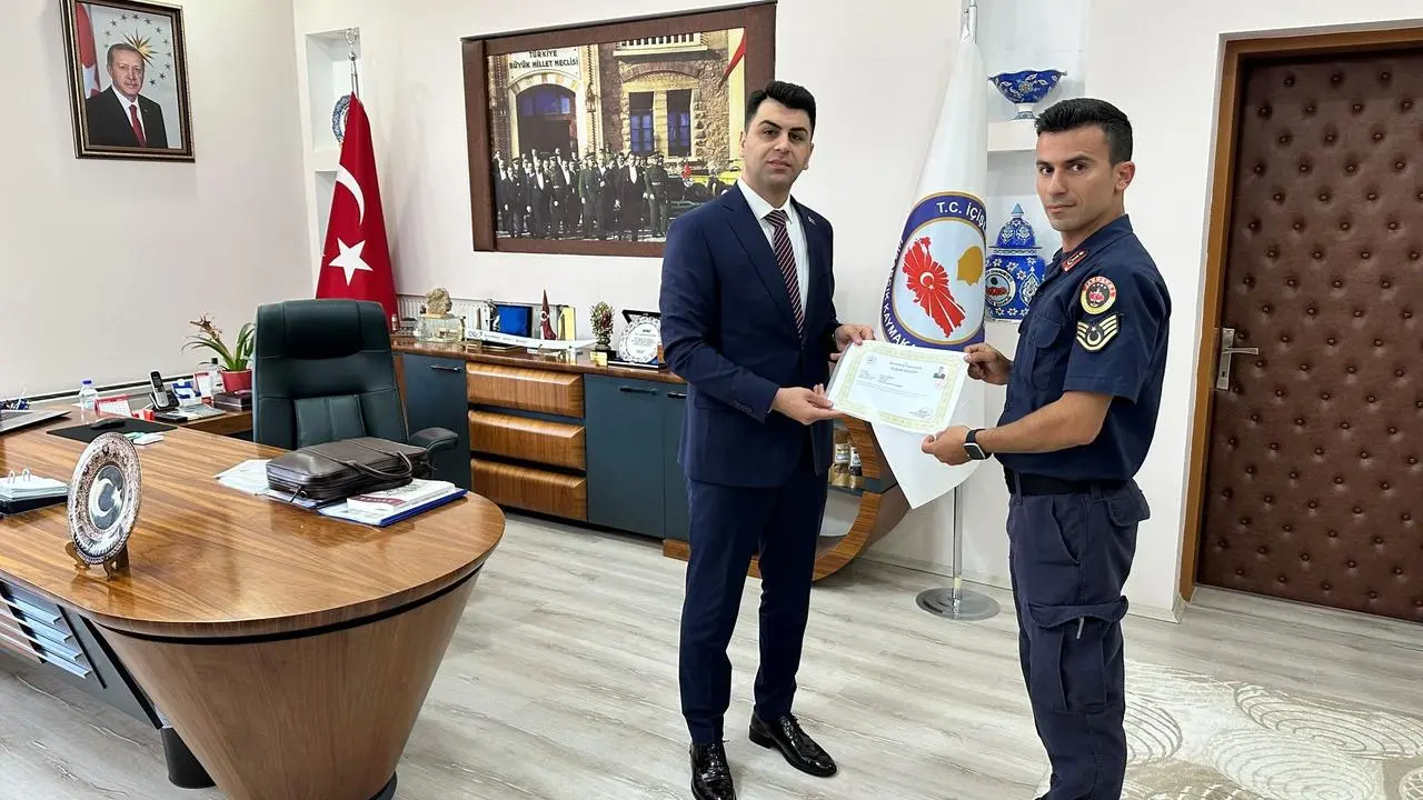 Hisarcık Kaymakamı Muhammed Samet Bahar, başarılı hizmetlerinden dolayı jandarma personeline başarı belgesi takdim etti.
