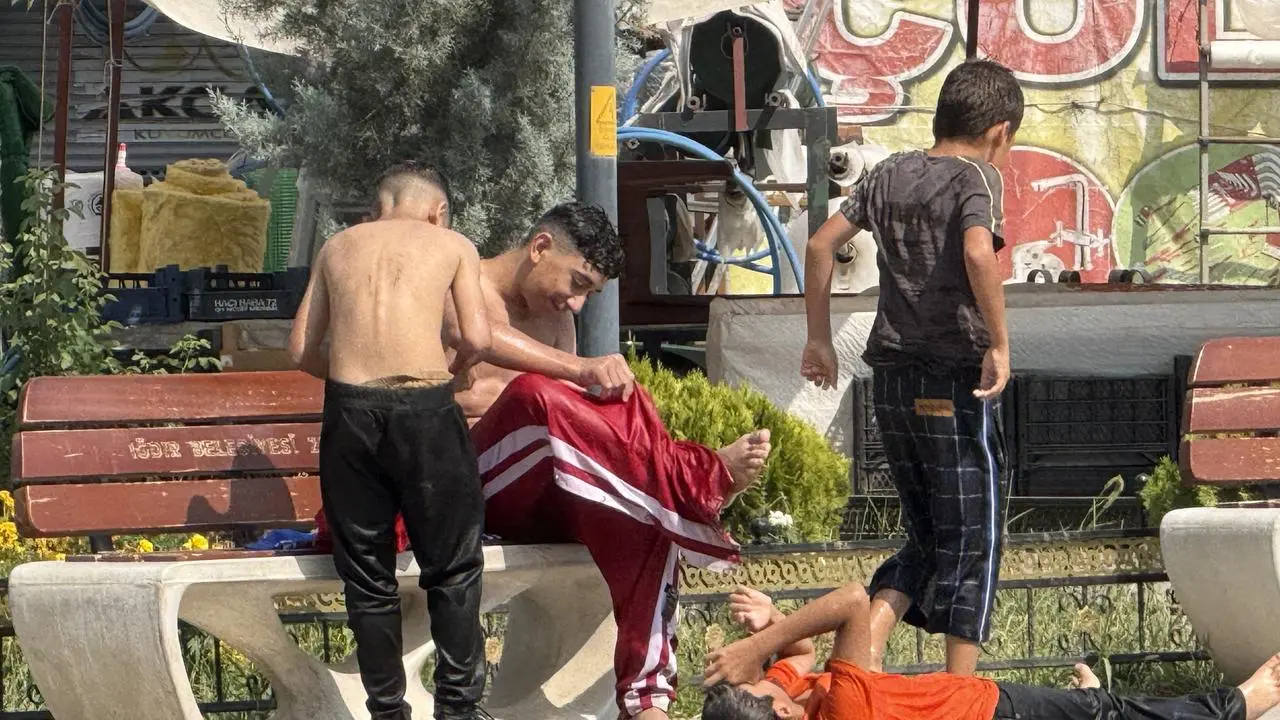 Uyarı levhalarına rağmen çocuklar balıklama suya atladı ve serinlemeye çalıştı. Deniz ve havuz ücreti olmadığı için süs havuzunu tercih ettiler.