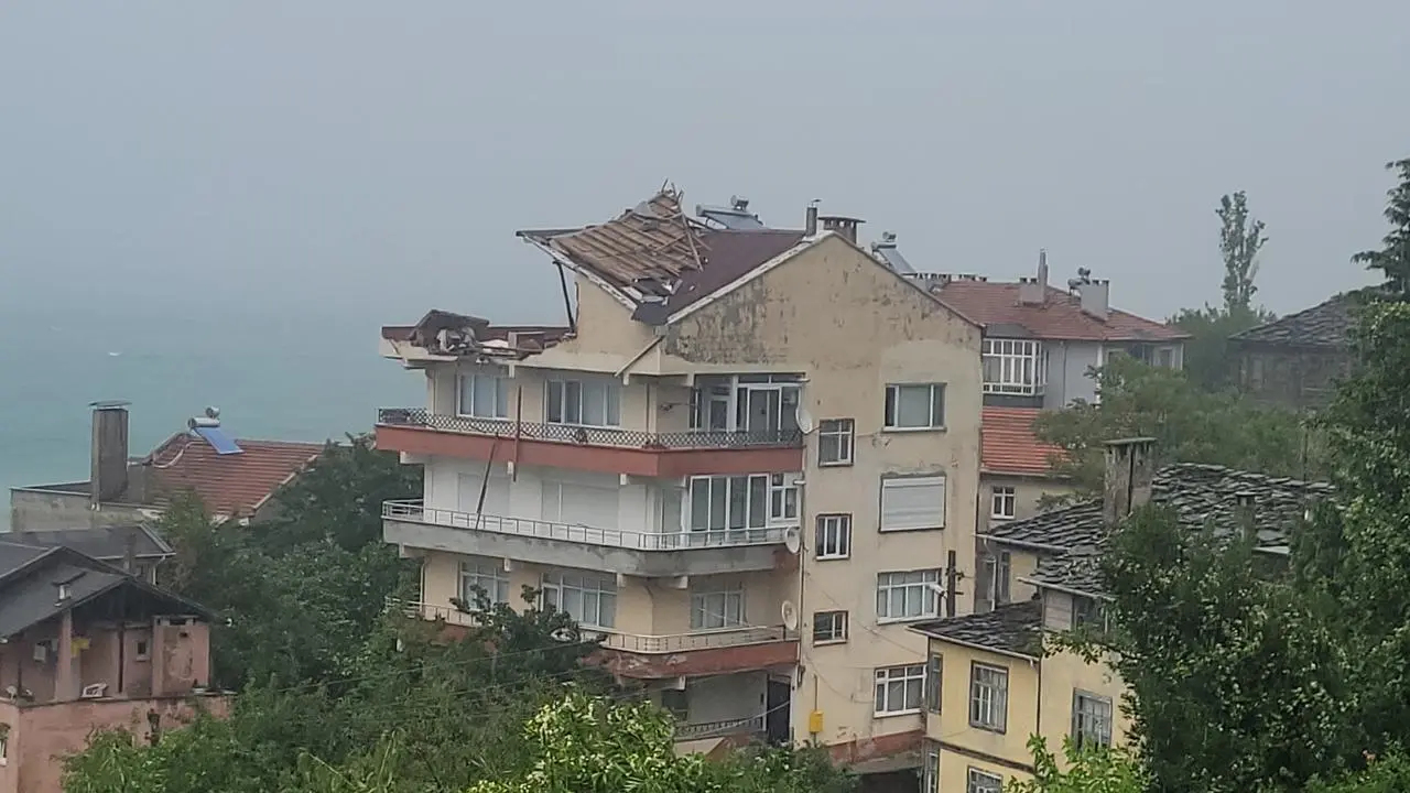 Kastamonu'nun İnebolu ilçesinde etkili olan hortum ve fırtına nedeniyle çatılar uçtu, elektrik hatları zarar gördü.