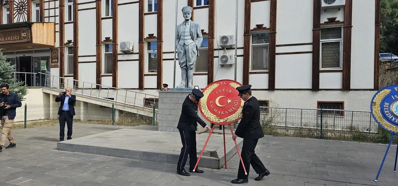 Atatürk Anıtı’na çelenk sunumuyla devam eden törene resmi kurumlar ve vatandaşlar katıldı. İspir Kaymakamlığı, Garnizon Komutanlığı ve Belediye Başkanlığı çelenklerini sundu.