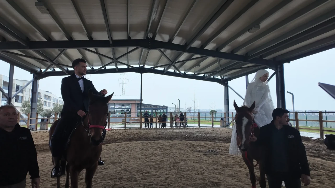 Behçet Demir ve Dilara Eren, belediyeye ait binicilik tesisinde tanışıp evlenmeye karar verdi. Klasik tören yerine ortak tutkularını yansıtan bir organizasyon yapmayı tercih ettiler.