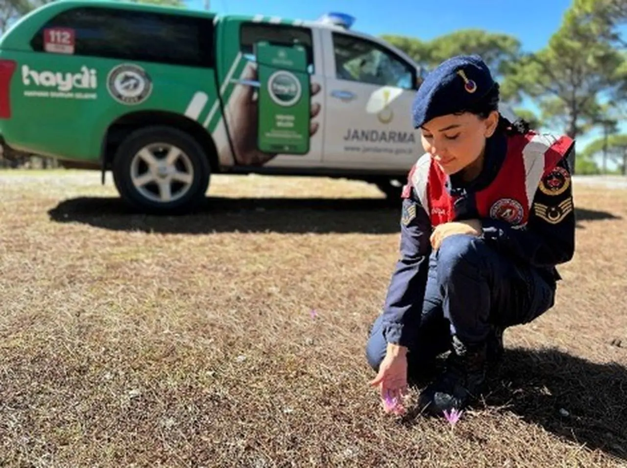 Aydın'da endemik Sultan Çiğdemi bitkisinin korunması için jandarma ekipleri titizlikle saha kontrolleri gerçekleştirdi. Bitkiyi koparanlara 557 bin TL gibi yüksek bir para cezası uygulanıyor.