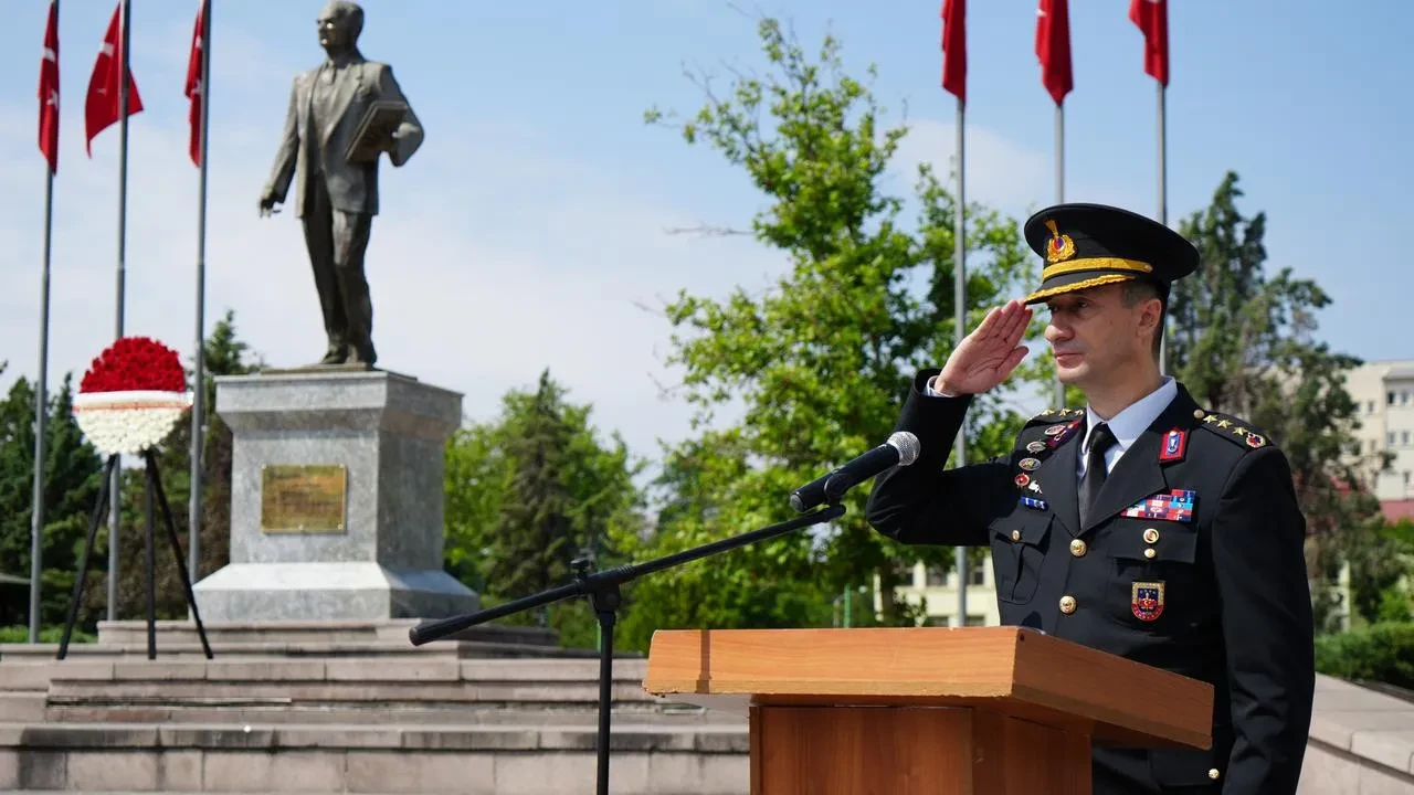 İl Jandarma Komutanı Kıdemli Albay Hasan Acar, Atatürk büstüne çelenk sundu. Tören, saygı duruşu ve İstiklal Marşı'nın okunmasıyla devam etti.