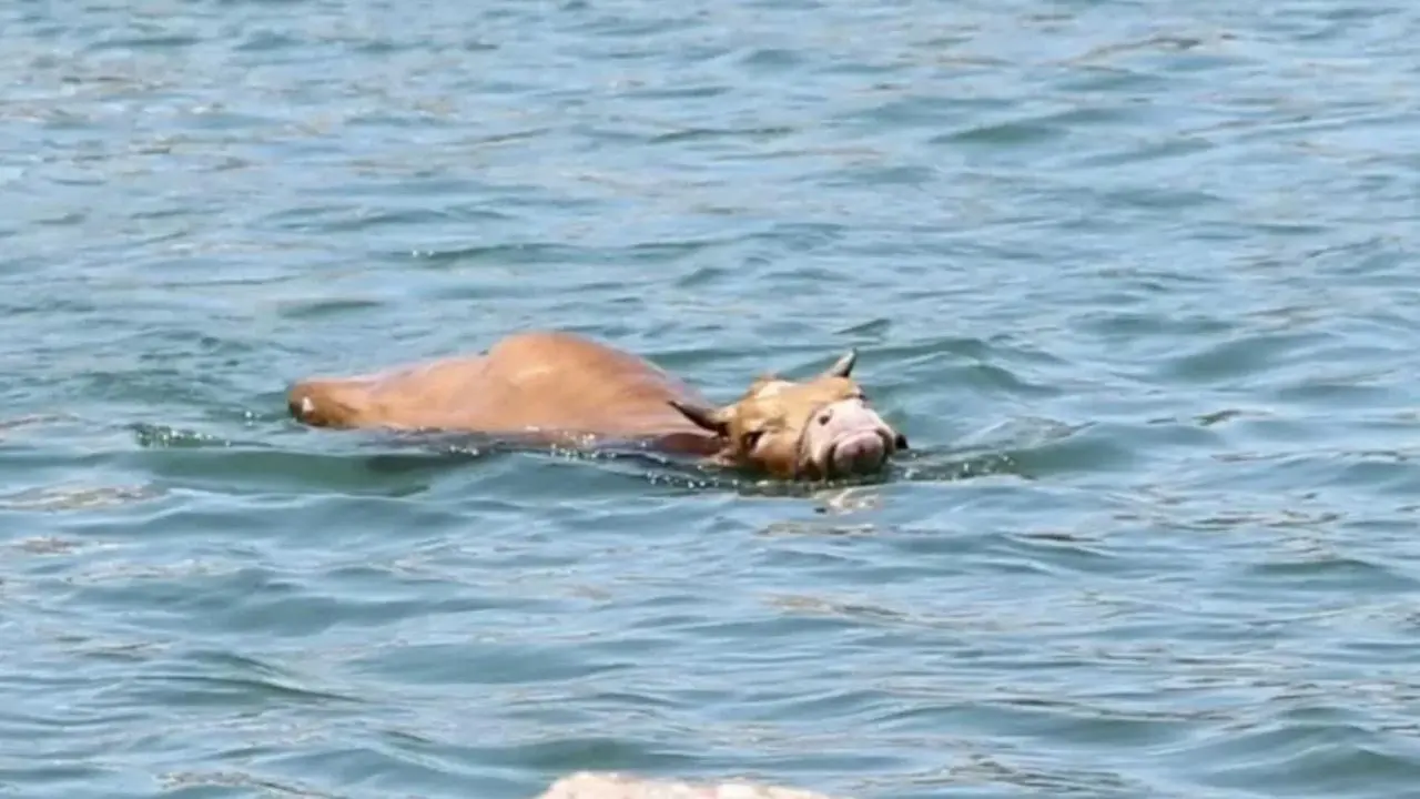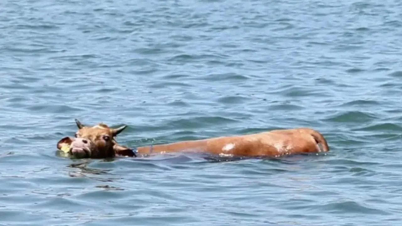 Kumyalı Balıkçı Barınağı'ndan suya giren kurbanlık, yaklaşık 20 dakika denizde kaldı. Ardından kendi çabasıyla karaya çıkarak balıkçı kulübesine sığındı.