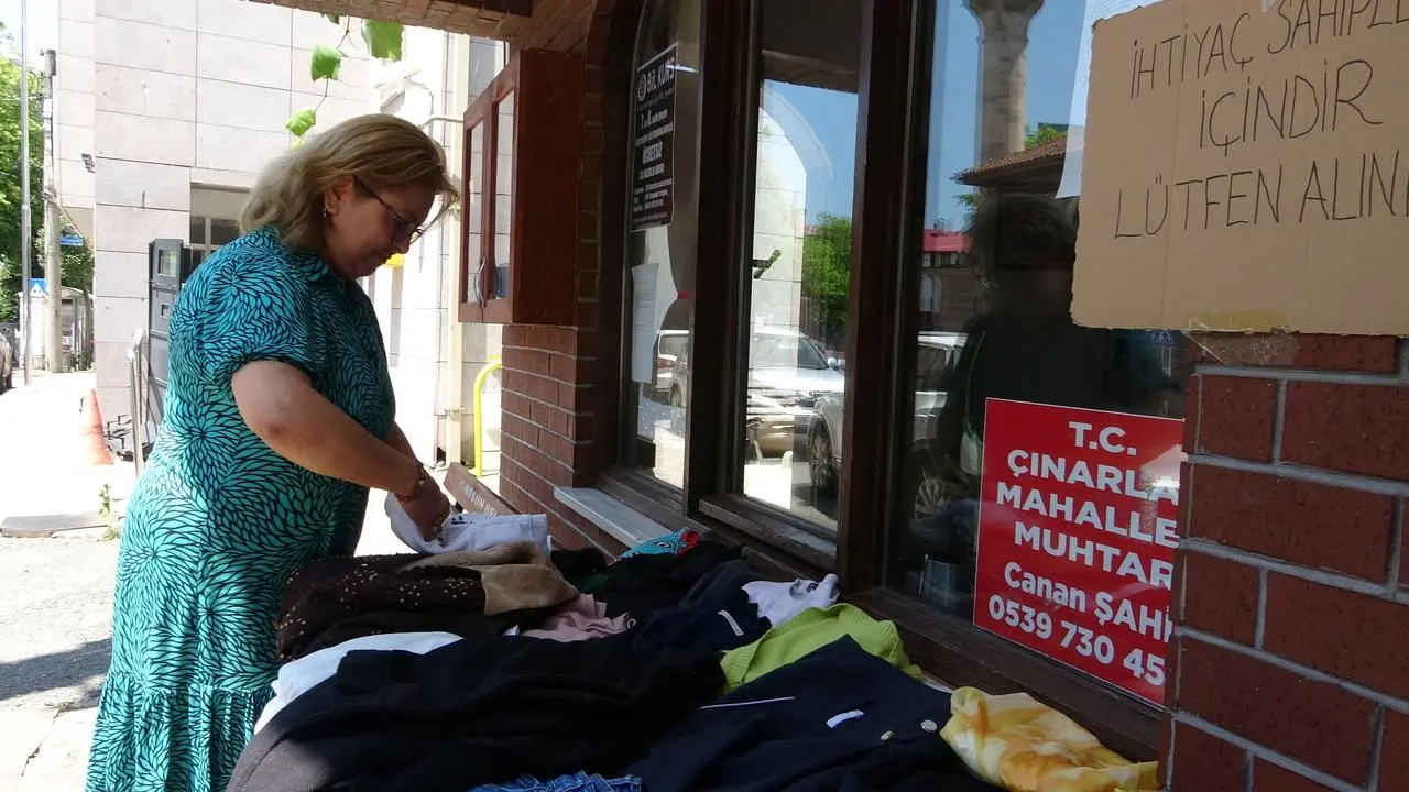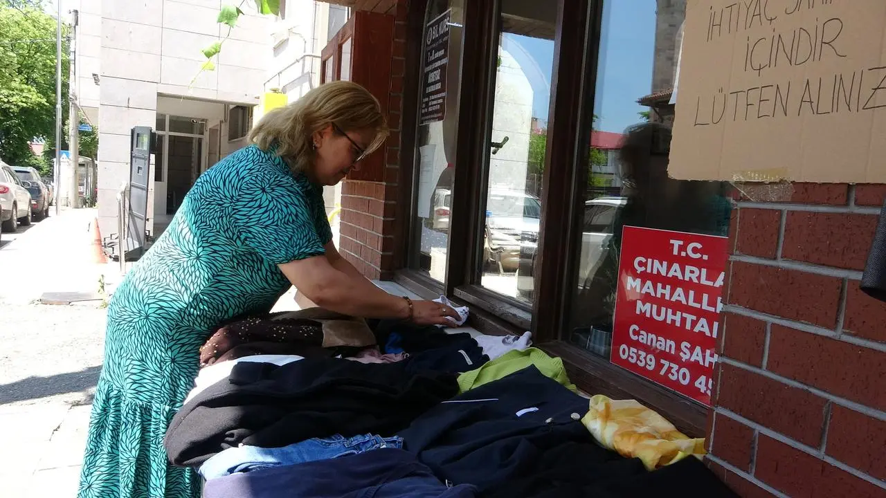 Mahalle sakinleri kullanmadıkları temiz giysileri muhtarlık bürosuna getiriyor. İhtiyaç sahipleri kimseye sormadan diledikleri gibi alışveriş yapabiliyor.