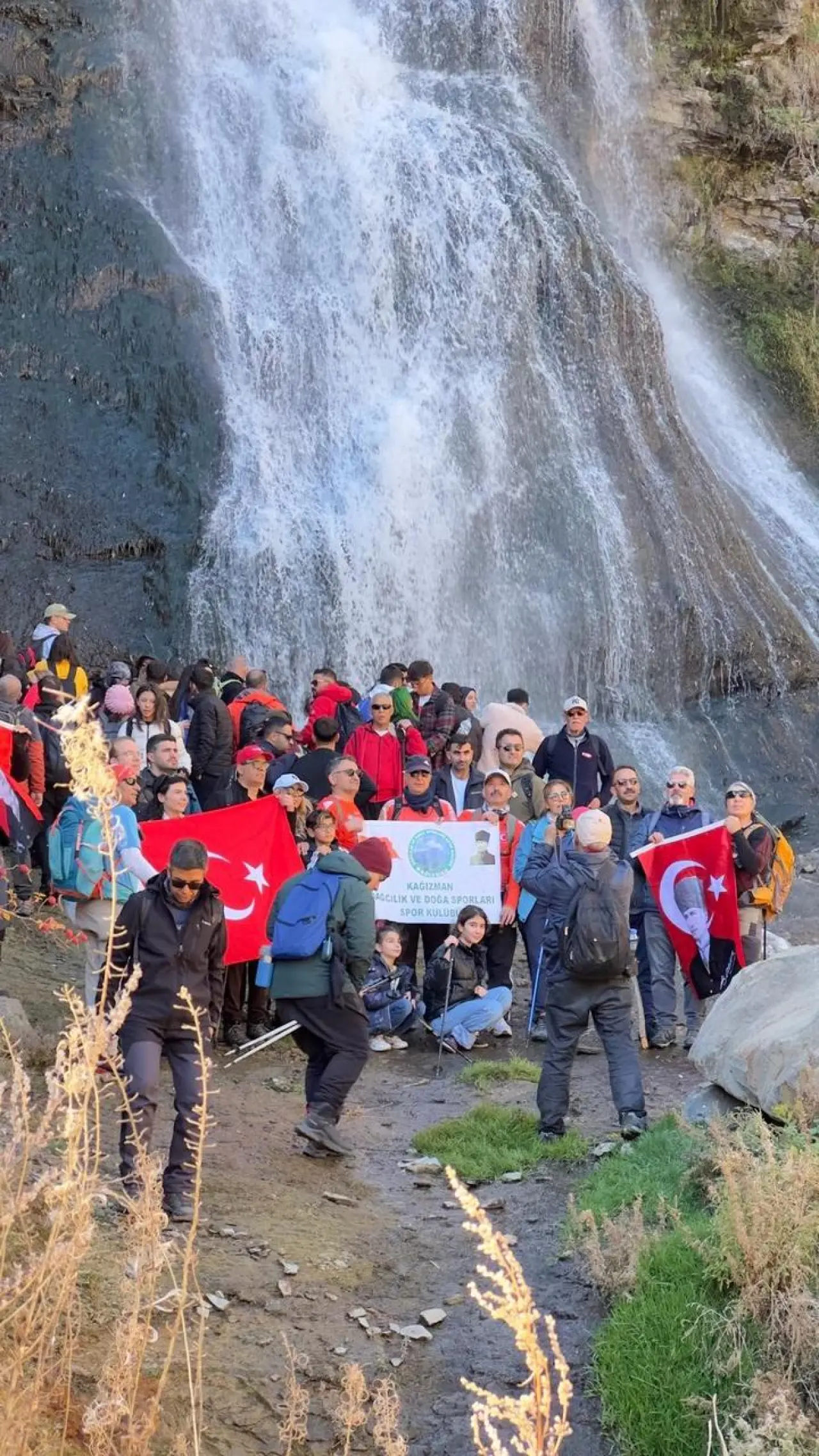 Kars'ta 100 dağcı, Susuz Şelalesi'ne yürüyerek doğa turizmine dikkat çekti.