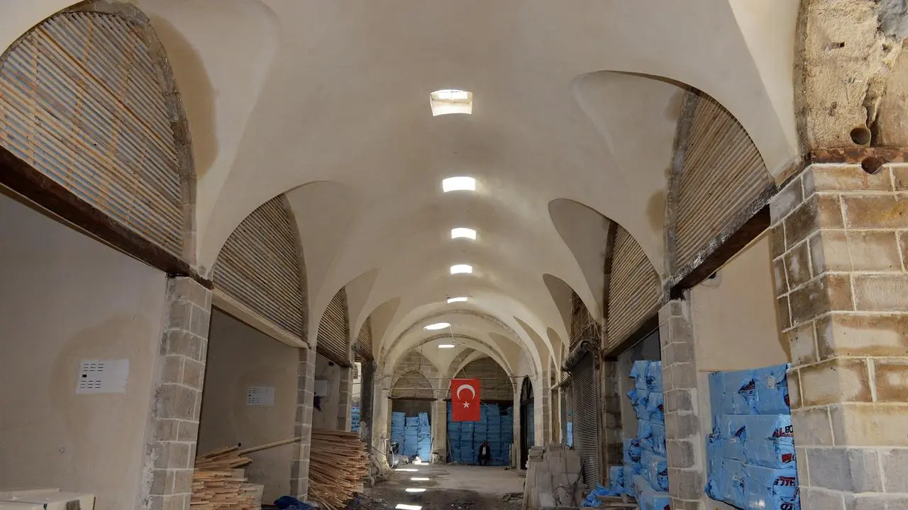 Kahramanmaraş'taki tarihi kapalı çarşıda deprem sonrası restorasyon çalışmaları hızla devam ediyor.