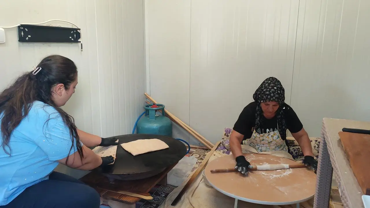 Kahramanmaraş'ta anne ve kızı, konteyner dükkanda bazlama ve gözleme yaparak geçimlerini sağlayıp diğer kadınlara ilham veriyor.