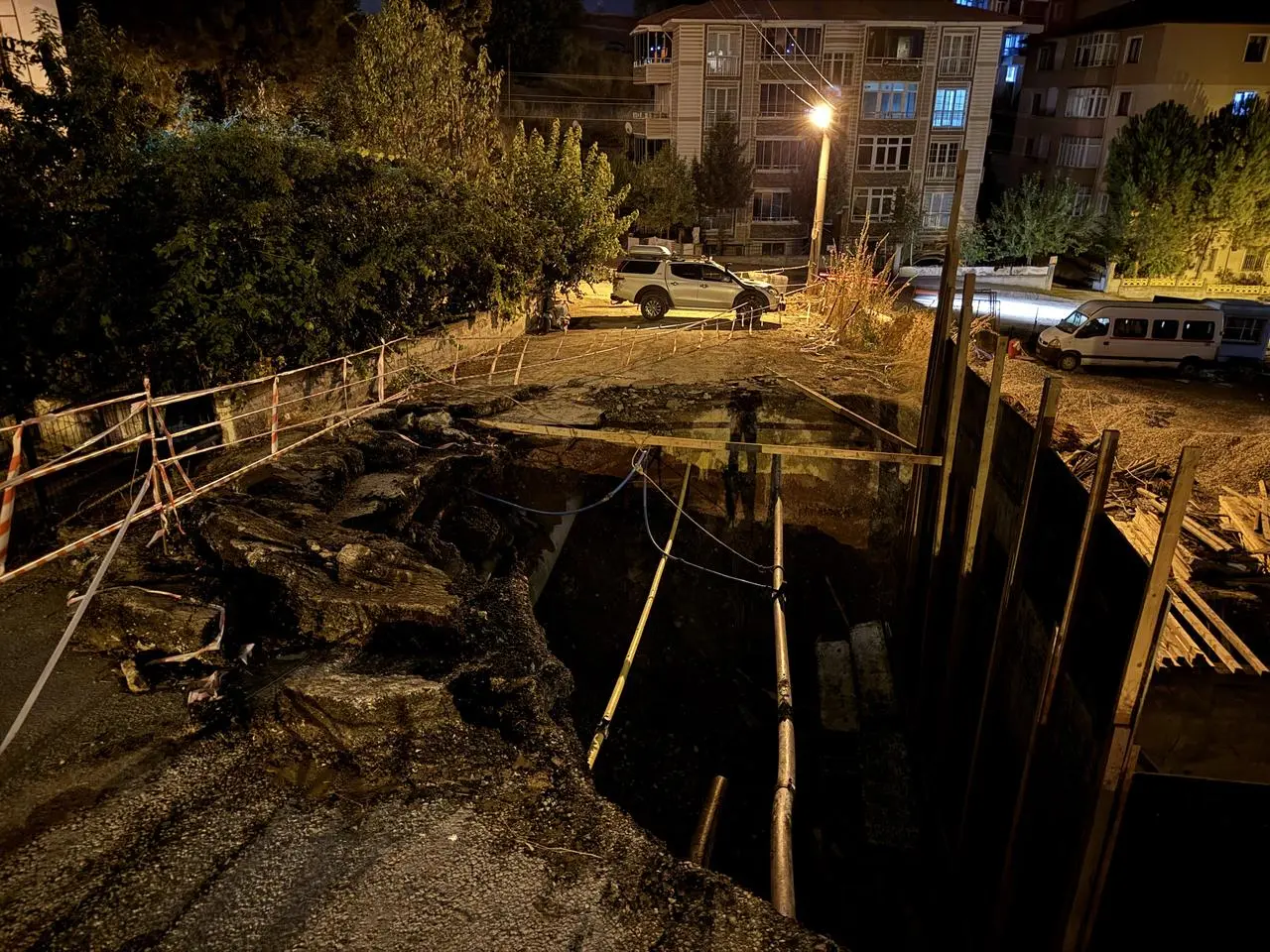 Çöken yol bölgesi trafiğe kapatıldı. Yakındaki apartmanlar için risk incelemesi başlatıldı.