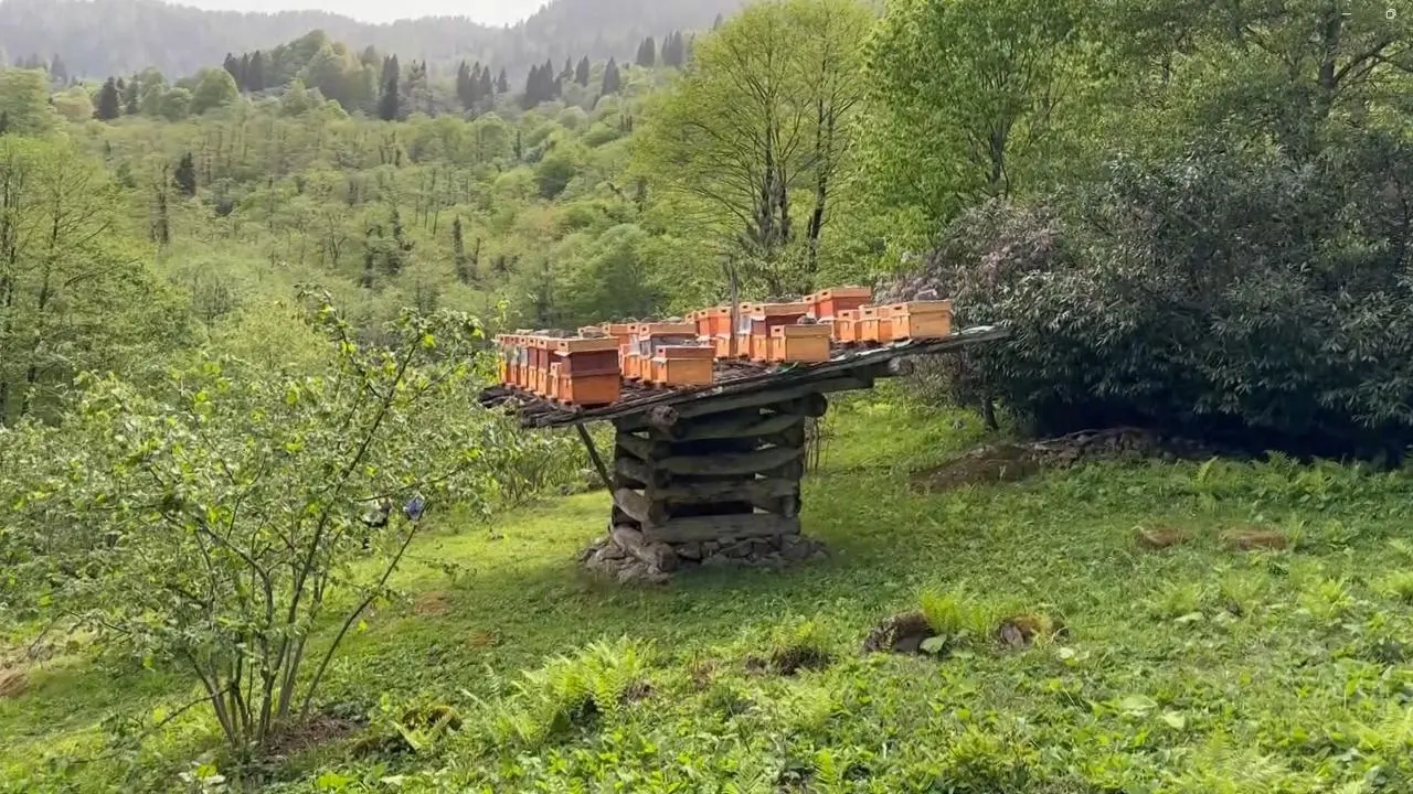 Giresun'un Güce ilçesinde geleneksel yöntemlerle deli bal üretiliyor. Çardak sistemi sayesinde arılar yaban hayvanlarından korunuyor.