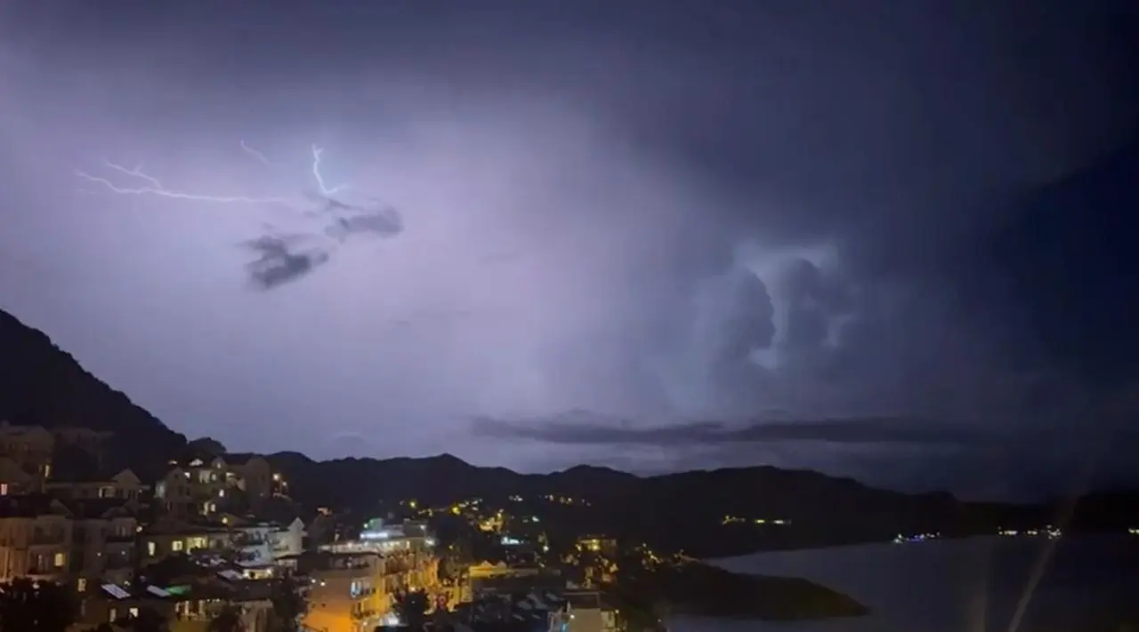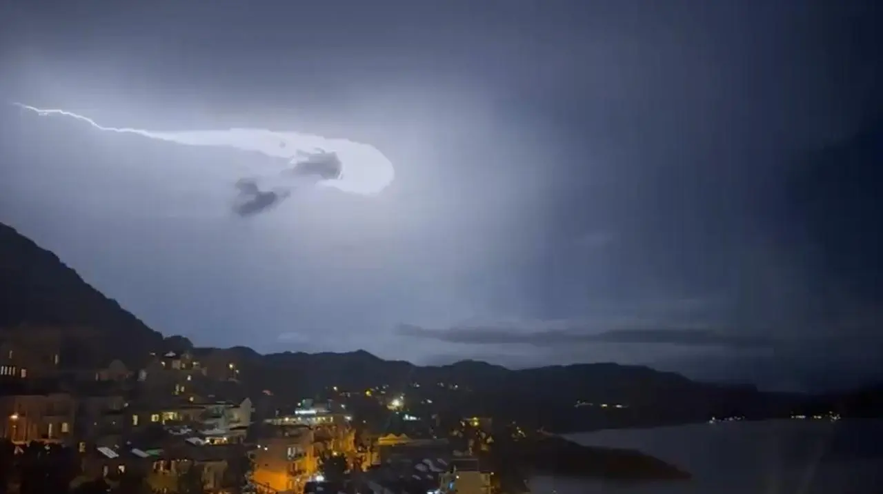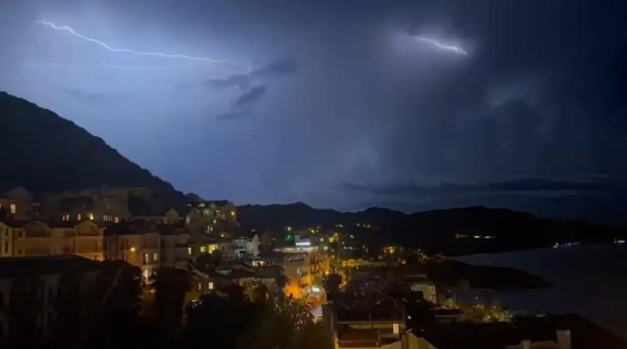 Meteoroloji'nin uyarısı sonrası bölgede yoğun yağış ve şimşekler görüldü. Gökyüzündeki ışıklar vatandaşlar tarafından kaydedildi.