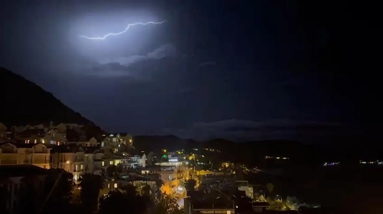 Antalya'nın Kaş ilçesinde şimşekler geceyi aydınlatarak etkileyici bir manzara oluşturdu.