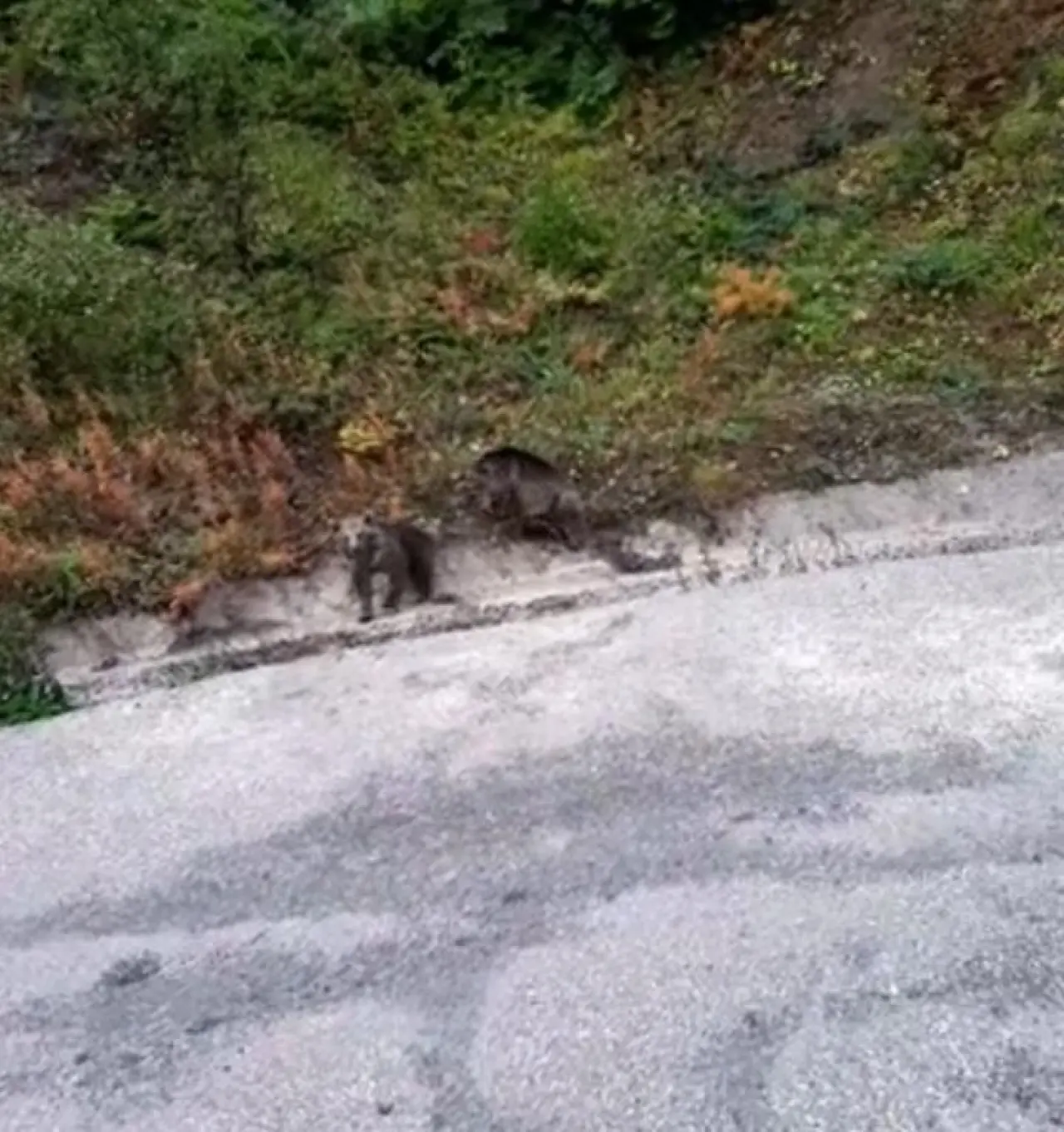 Yol kenarına inen yavru ayılar, bölge halkı tarafından elleriyle besleniyor. Bu durum, doğa ve insan arasındaki bağı güçlendiriyor.