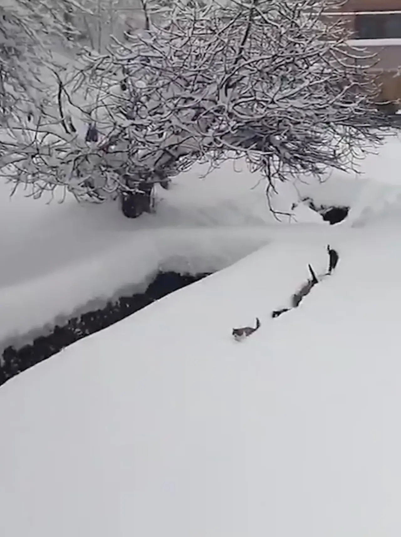 Köy sakinleri, kar kalınlığının 1 metreye ulaştığını belirtti. Kedilerin karda ilerlemeye çalışması, son derece sevimli bir tablo ortaya koydu.