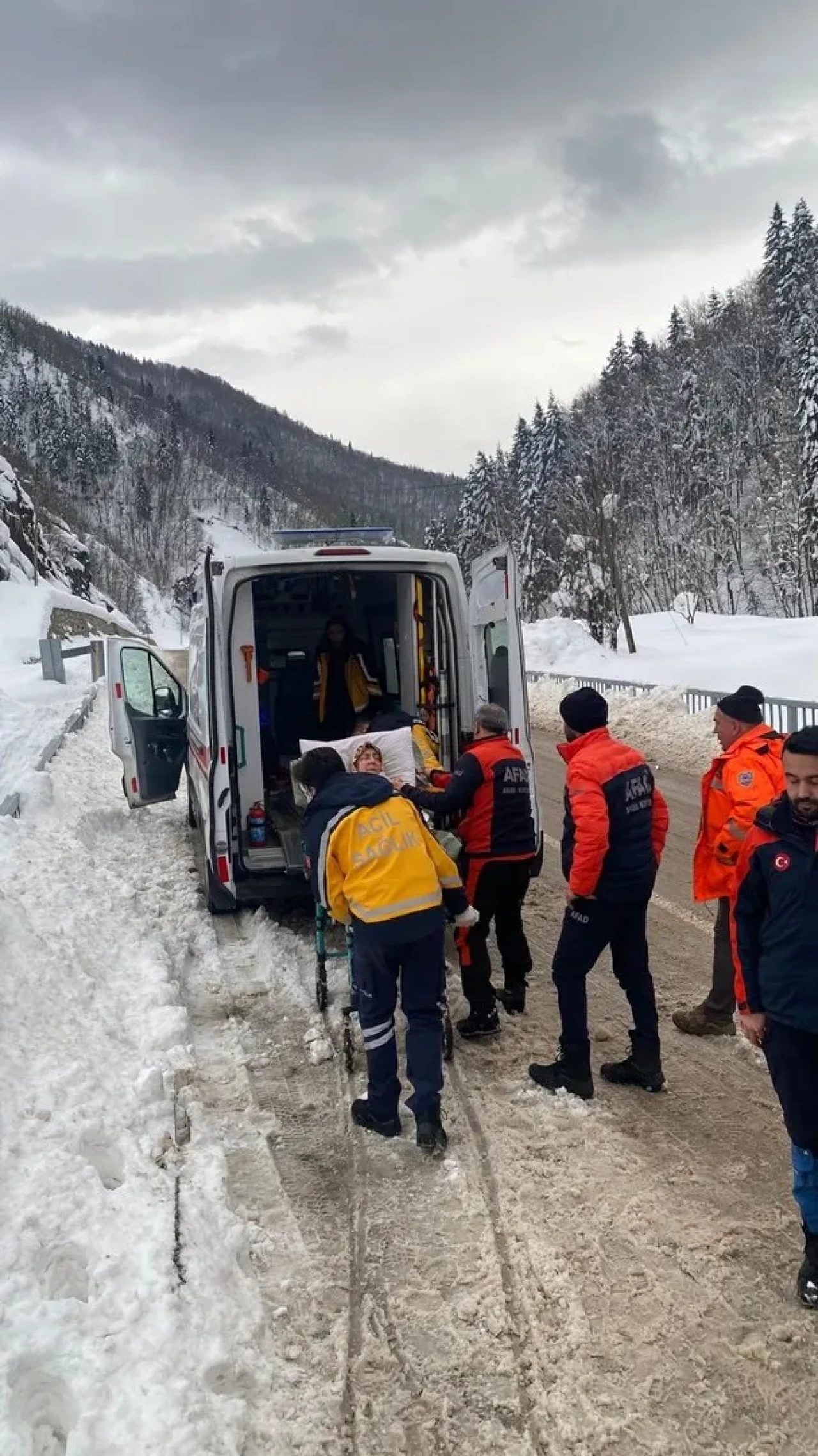 Kastamonu'nun Azdavay ilçesinde kardan kapanan yolda rahatsızlanan yaşlı kadın, AFAD ekipleri tarafından kurtarıldı.