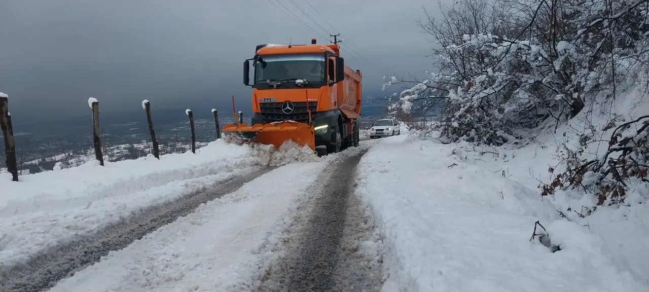 Çalışmalarda 4 kar bıçaklı kamyon ve 5 iş makinesi kullanılıyor. Yetkililer, vatandaşların güvenli ulaşımı için ekiplerin 7/24 görevde olduğunu açıkladı.