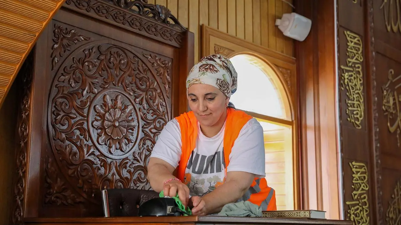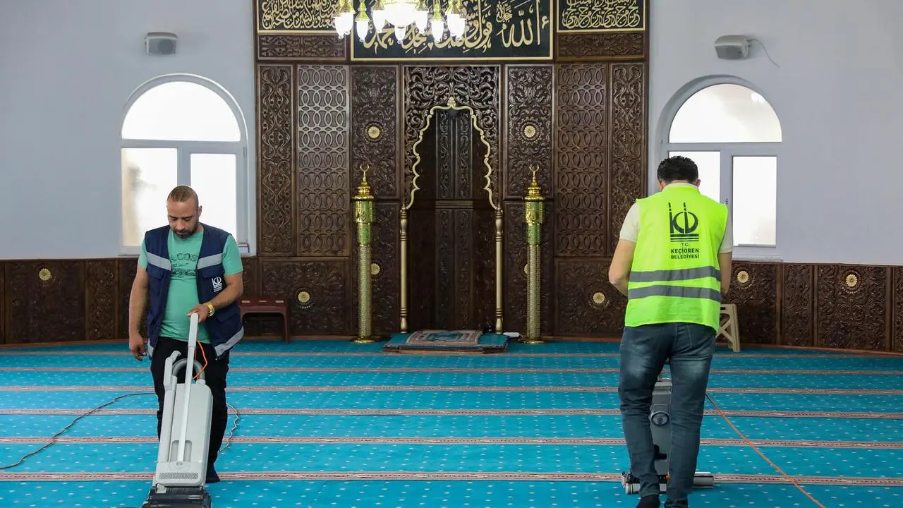 Belediye ekipleri camilerde detaylı temizlik çalışmaları gerçekleştirdi. Halılar süpürüldü ve avlular tazyikli suyla yıkandı.