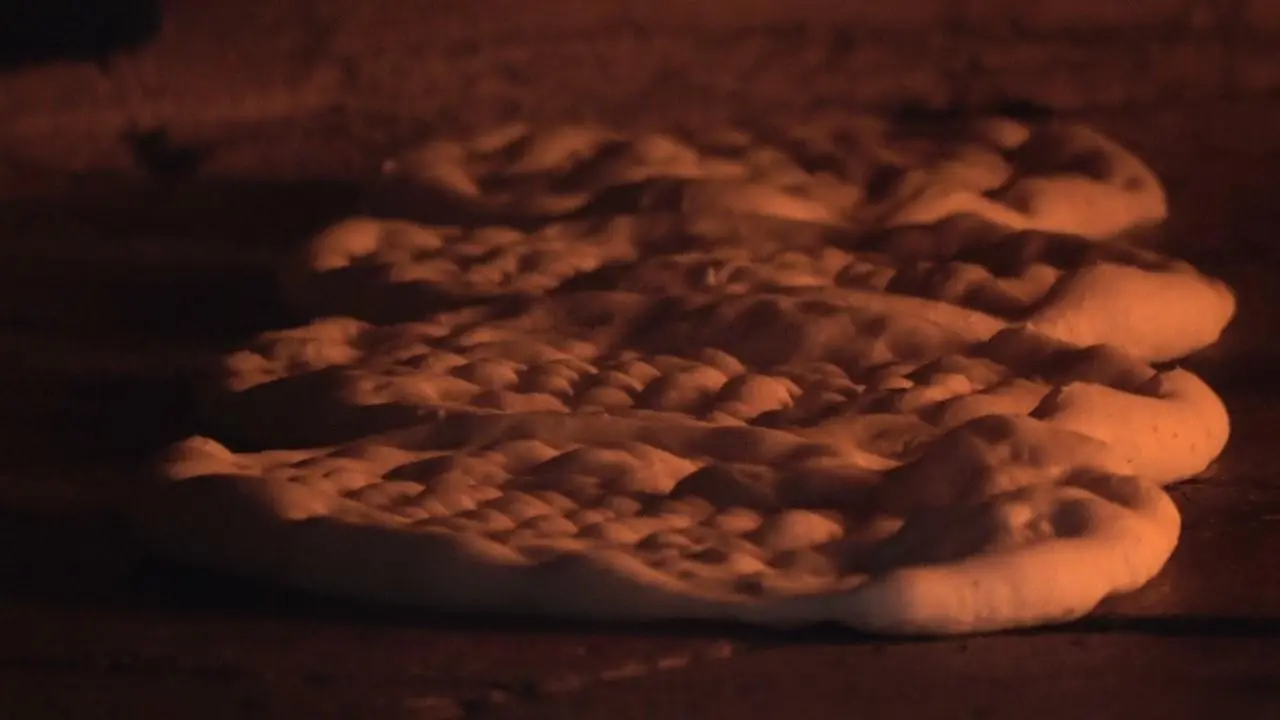 Fırın çalışanları yüksek sıcaklığa rağmen üretimi sürdürüyor. Çalışanlar işlerini severek yaptıklarını ve şükrettiklerini belirtiyor.